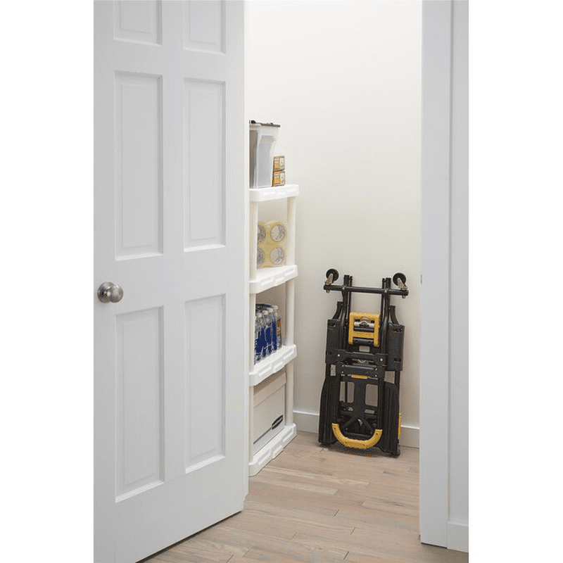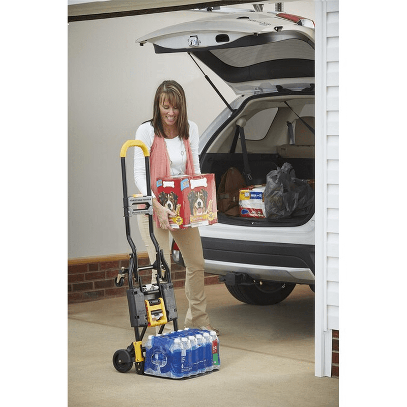 Whether you are moving boxes or unloading the car; simply unfold the COSCO Folding 2-in-1 Hand Truck, and let this lightweight hand truck do all your heavy lifting. The Hand Truck easily converts from its flat storage position to a 2-wheel upright hand truck or 4-wheel cart with no pins or tools. The flat folding design makes it easy to store in a closet, the garage, or even the trunk of your car. The new extendable handle makes this hand truck even easier to use for taller individuals.