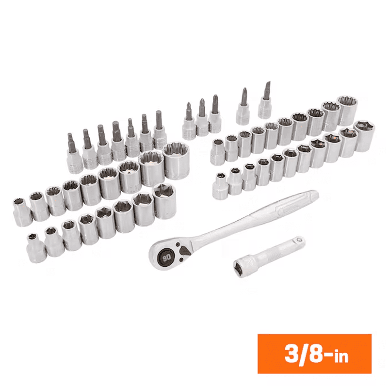 - Sockets and wrenches are marked with easy to read stamped size callouts