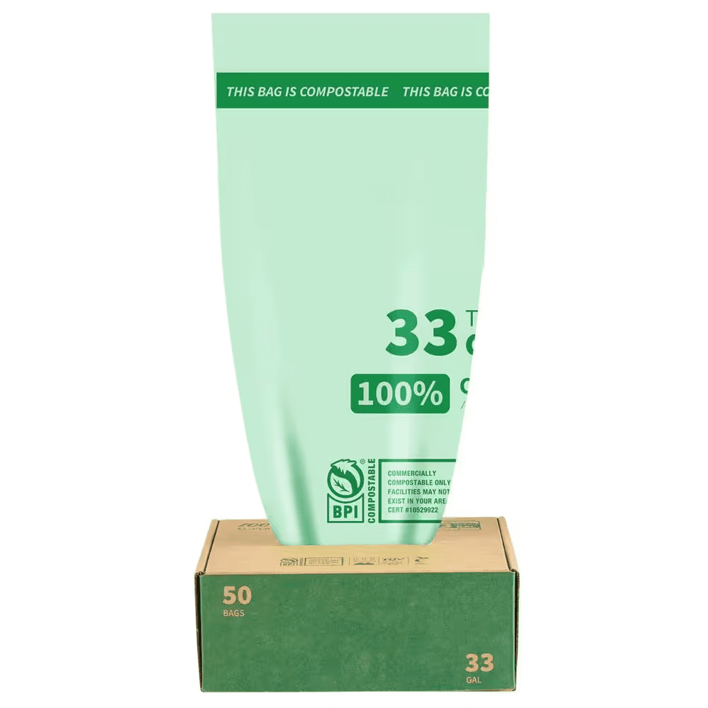 Embrace sustainability with our 33 gal. compostable trash bags, perfect for both indoor and outdoor use. Certified by BPI and OK Compost Home, these biodegradable bags decompose naturally, making them an eco-friendly choice for your waste management needs. Whether you’re dealing with yard waste, restaurant refuse, or office trash, these durable and easy-to-use bags ensure your garbage disposal is efficient and environmentally conscious.