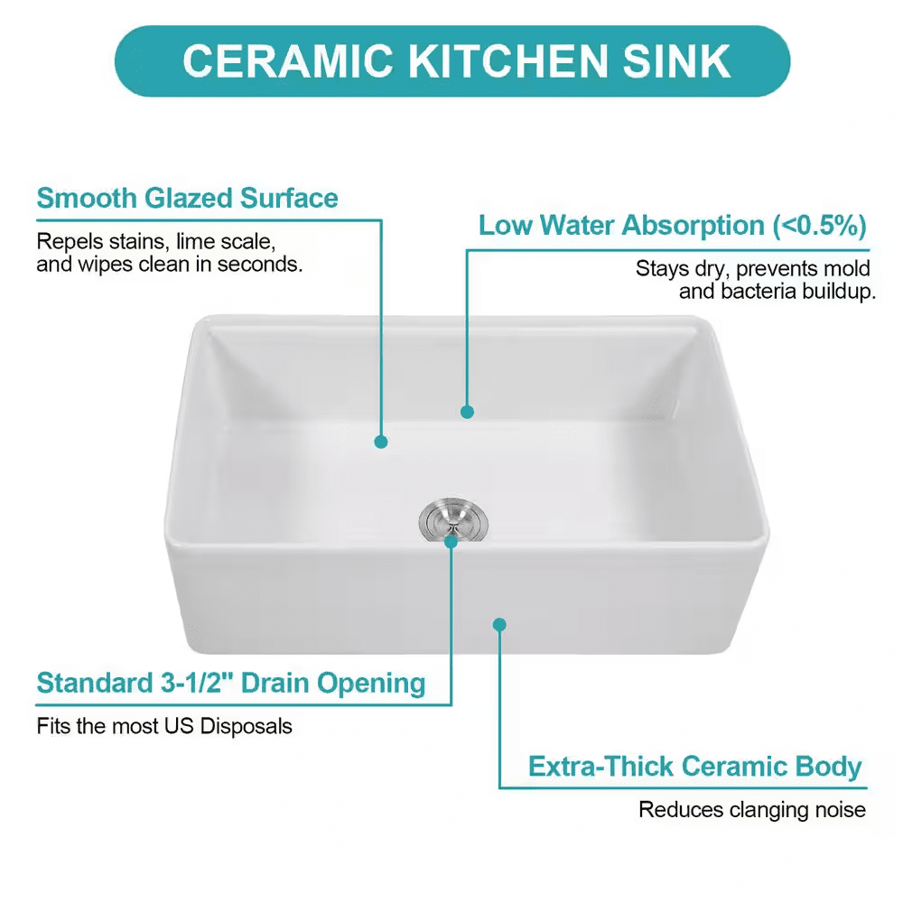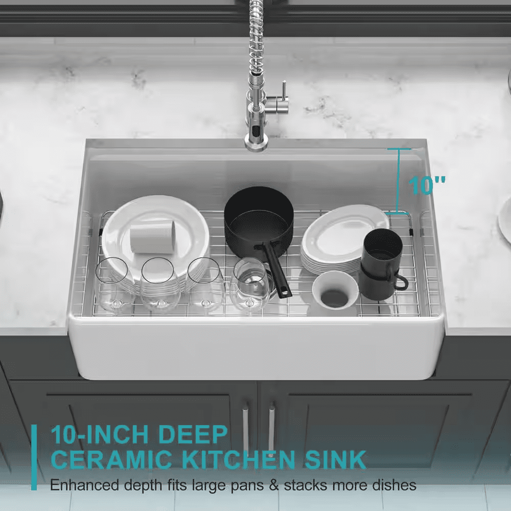 Our farmhouse stainless steel sinks combine fashion with function to create a contemporary look for the kitchen.The kitchen sink has a precise corner shape and a simple and spacious design. Made from high-quality ceramic, its attractive and smooth glaze is easy to clean. The ceramic construction with high temperature heat-treated vitreous glazed surface to resist stains and scratches. Resistant to high heat, as well as acidic and general household chemicals. With enough depth to hold and clean pans, pots and grills without splashing around, this deep kitchen sink helps you tackle more housework at once. This sink is easy to clean and stain resistance,washes clean with soapy water;food and liquid won’t stain.Kitchen space is a limited commodity, so every space that you can utilize is a huge win.With workstation sinks, you can install it on the largest to the tiniest kitchen.Everything about a workstation sink screams efficiency and functionality.