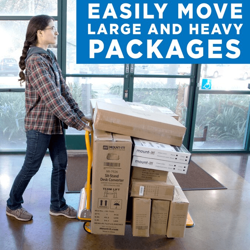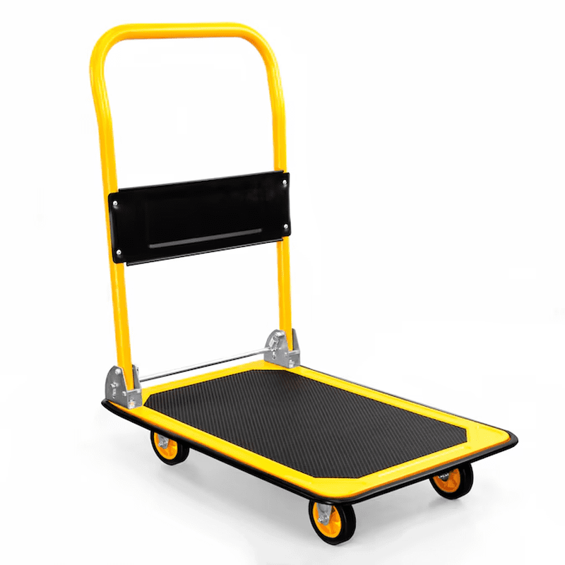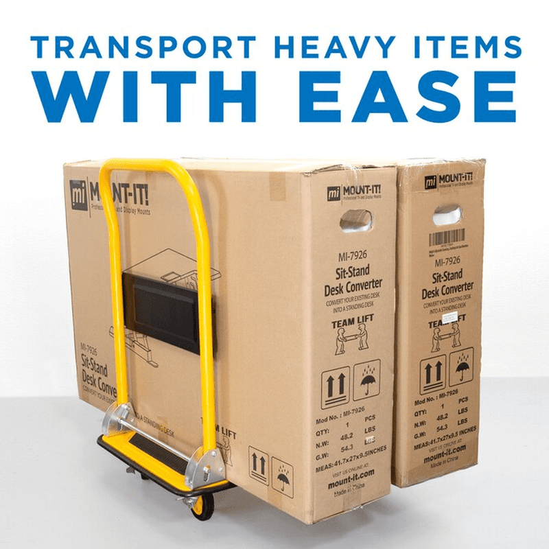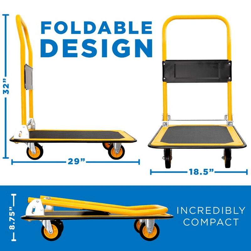 - Folds down for easy storage, Large carrying capacity of up to 330 lbs., Rolls well on both hard surfaces and carpet
