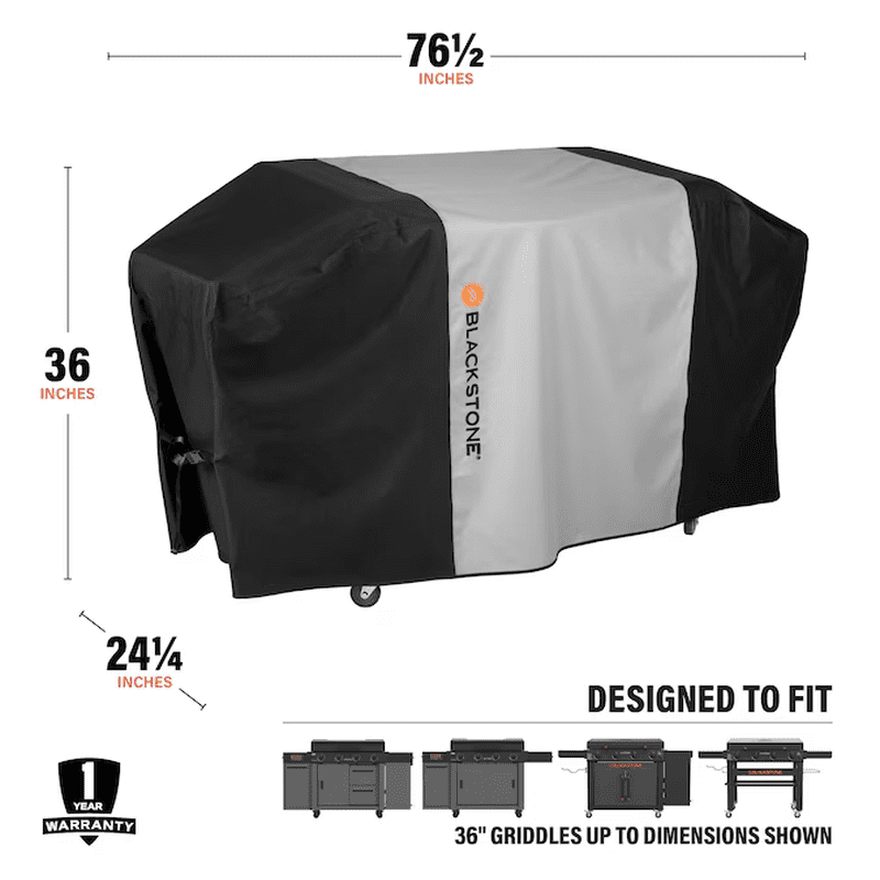 - Fits 36-in Blackstone Cabinet griddle models with hood and dual side shelves: Item numbers 5139519, 5188090, 2582823, 2582822, and 4911007