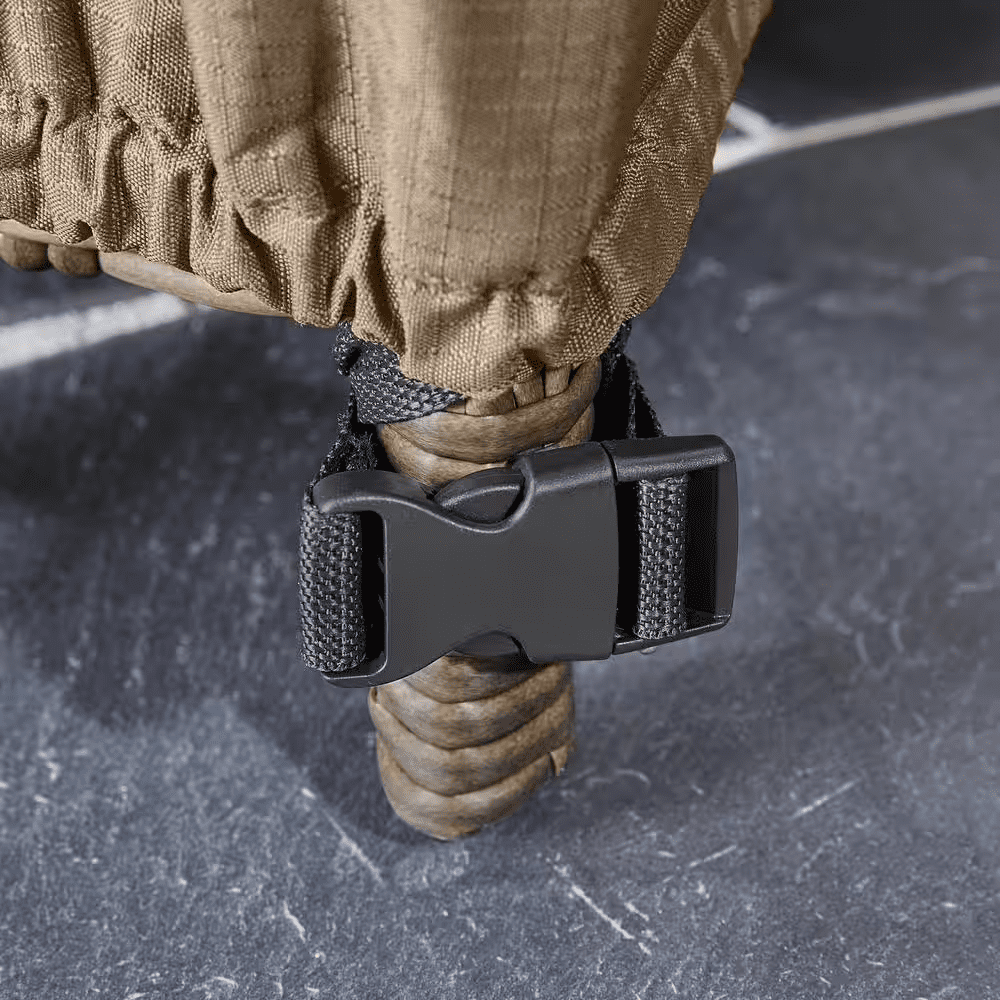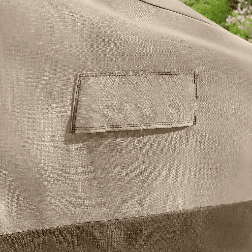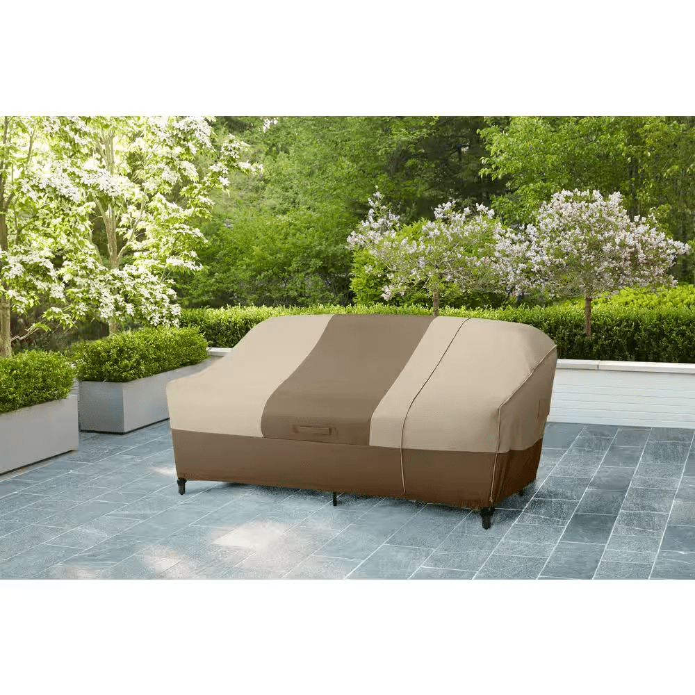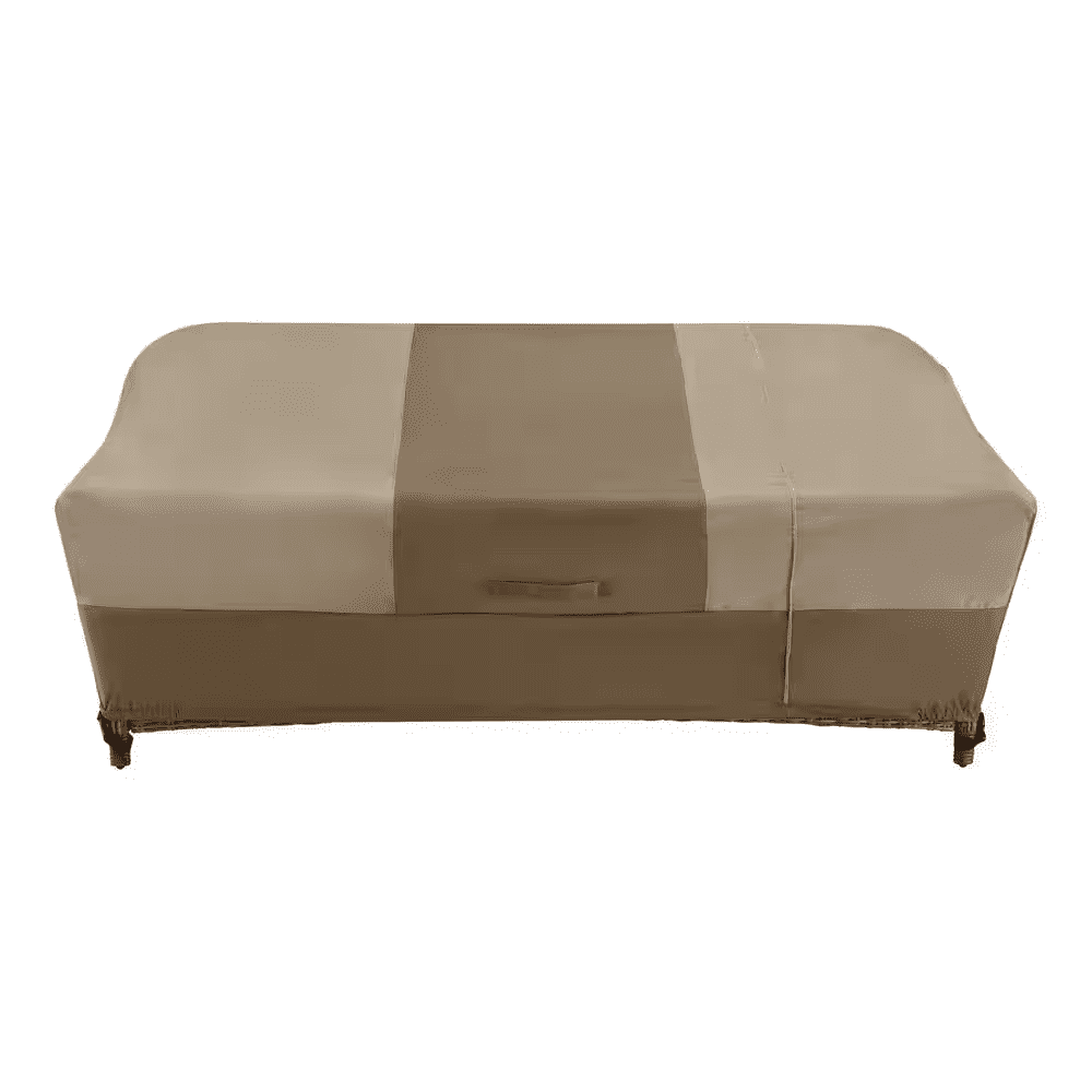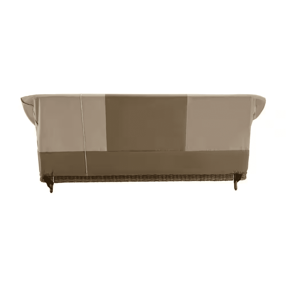 The designed is based on contrast colors on top and bottom. the idea showed up that the Hampton Bay patio Cover is not only protective outdoor furniture from dust, dirt, sun, rain and heavy snow, but also be a decoration in garden. Heavy duty Rip-Stop fabric has durable using life time. Elastic with adjustable buckles on bottom straps secure quickly to the legs so your Cover stays on during windy days. Universal Loveseat and sofa patio cover can fit up to 77.25in L x 38in W x 31in H