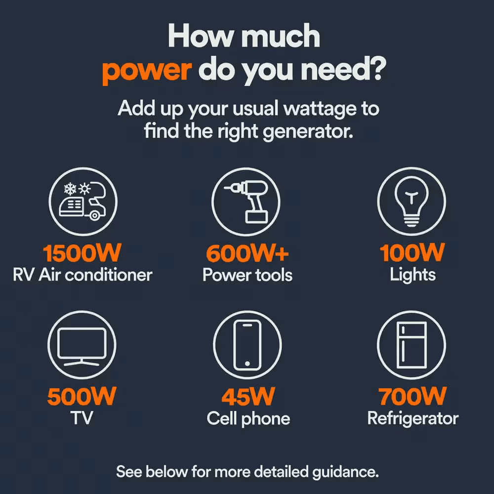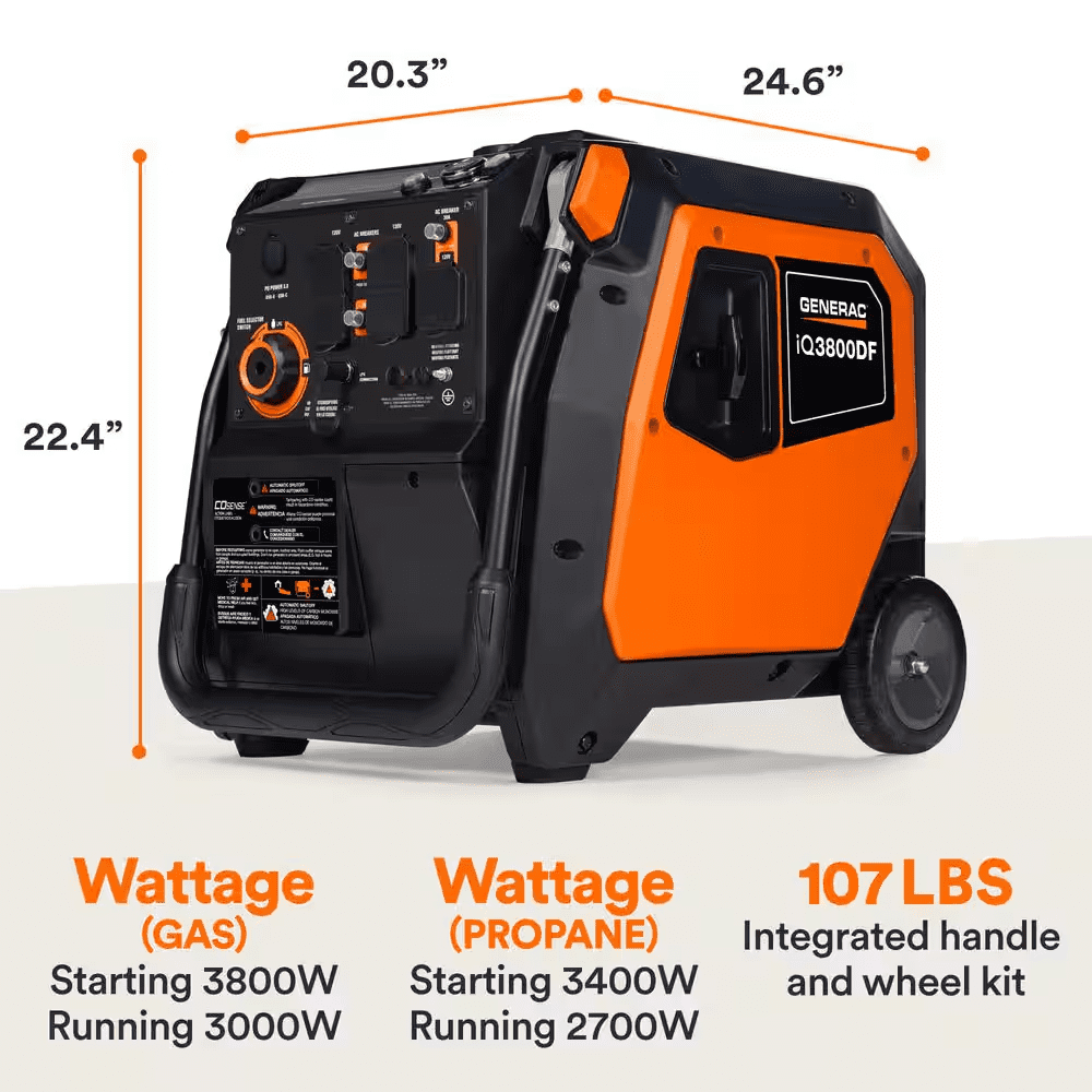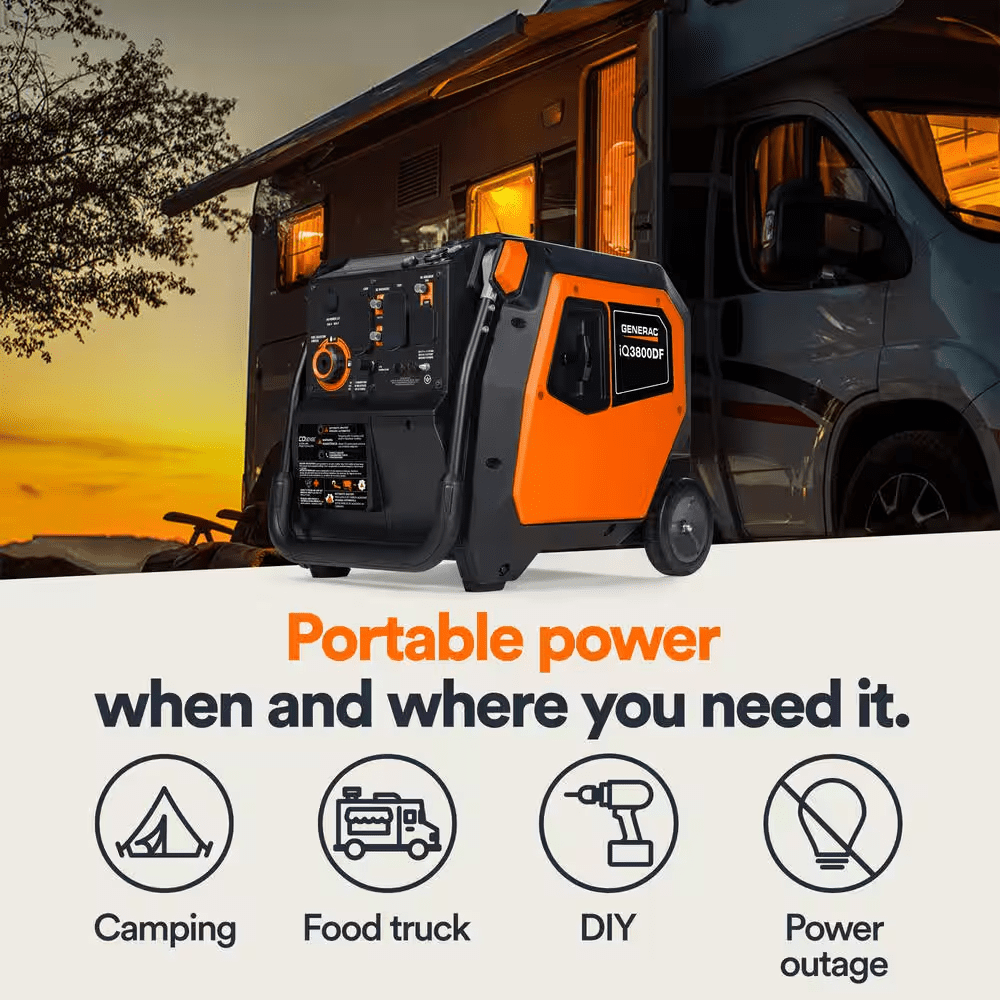 - Portable Generator, 3800 Peak Watts* / 3000 Running Watts* (gas)