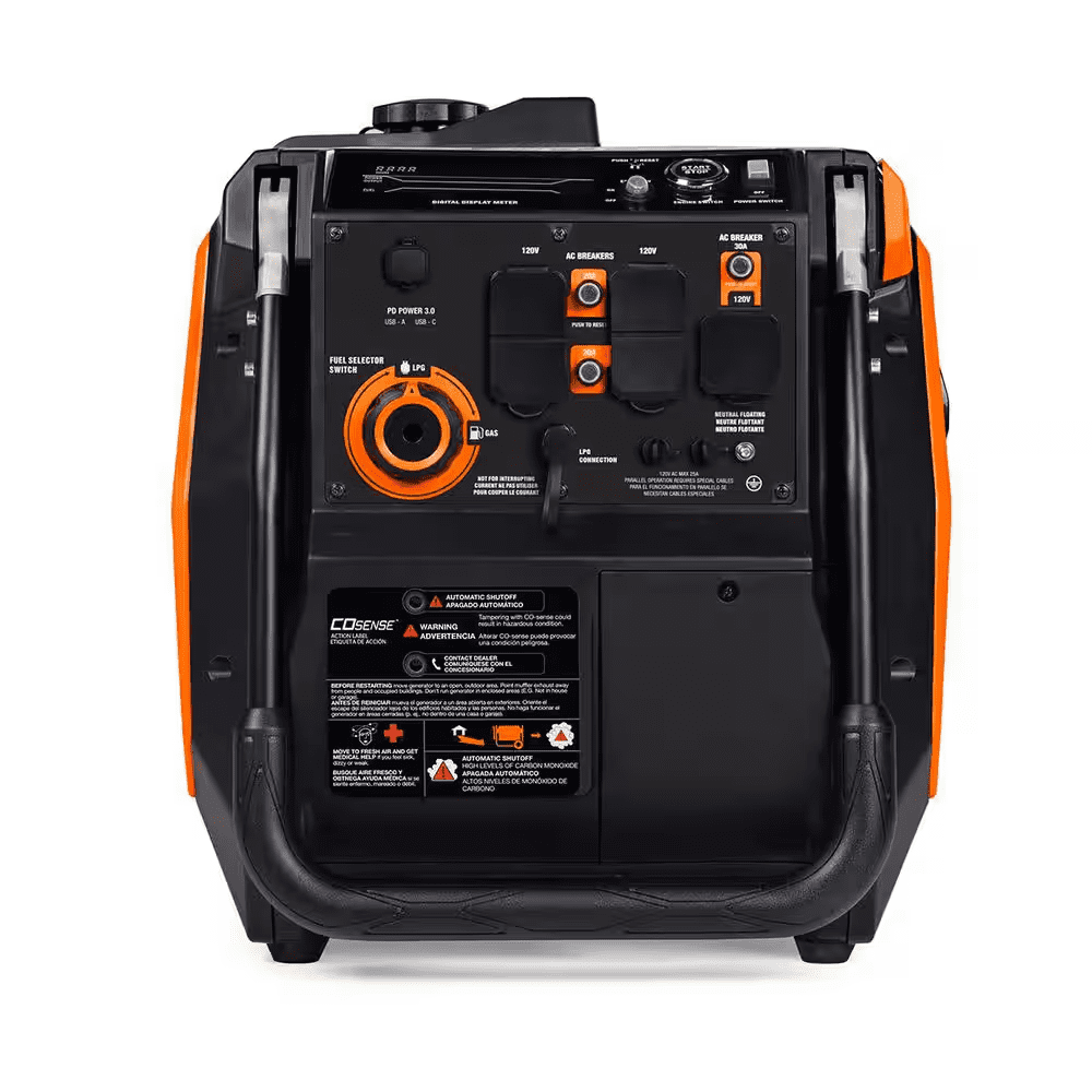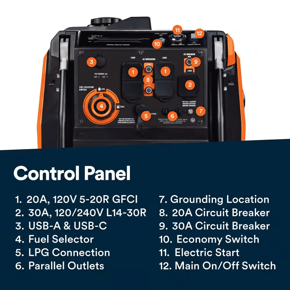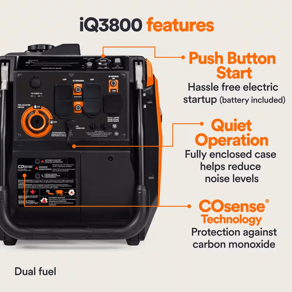 Bring the power wherever you go – from tailgate parties to camping trips, jobsites and beyond. This durable unit features an easy-to-use push button electric start for reliable, hassle-free ignitions with auto-choke (battery included), made for easy portability with an integrated handle and never flat wheels.Want the option to reduce noise and fuel consumption – or to maximize power response? Economy Mode allows you to choose. Plus, the intelligent LED display allows you to easily and accurately see power output and fuel consumption (gas), while onboard COsense technology provides protection against hazardous carbon monoxide.And because inverter generators utilize a different type of alternator to generate AC power, the result is a portable generator with reduced weight and size with ultra-clean power, capable of safely powering sensitive electronics and tools.