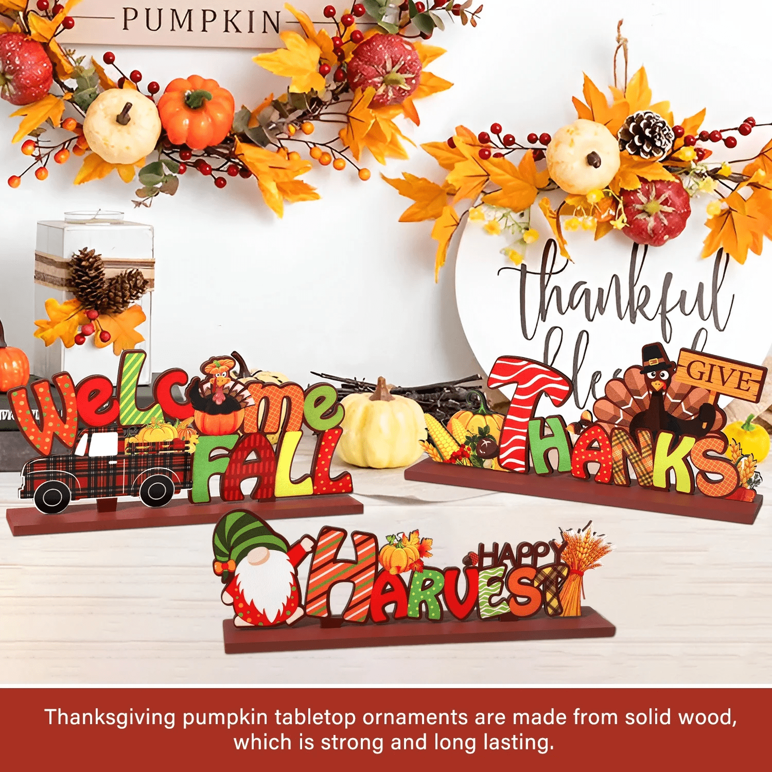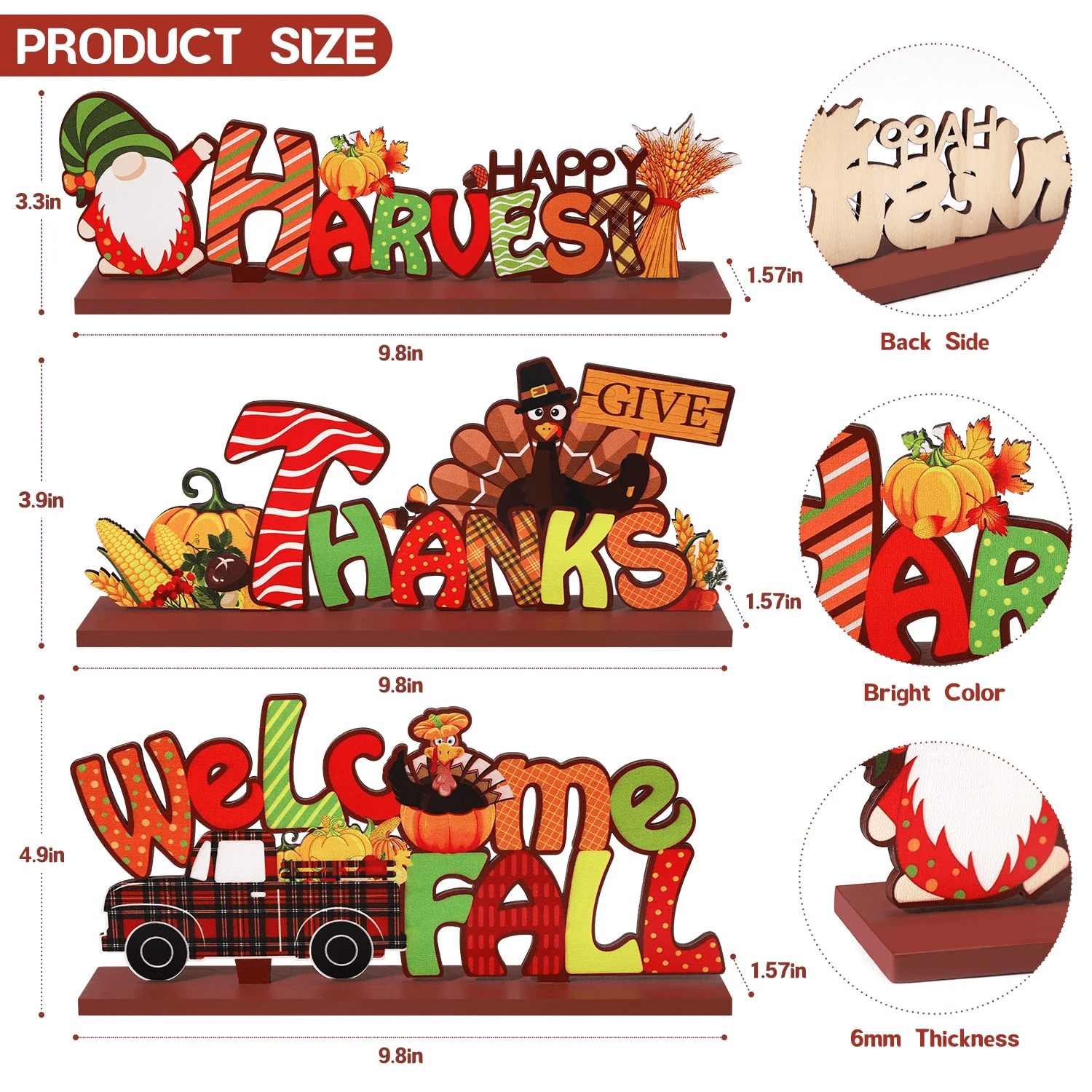 Ayieyill Set of 3 Thanksgiving Themed Signs, Wooden Harvest Ornaments for Home Office Thanksgiving Decorations