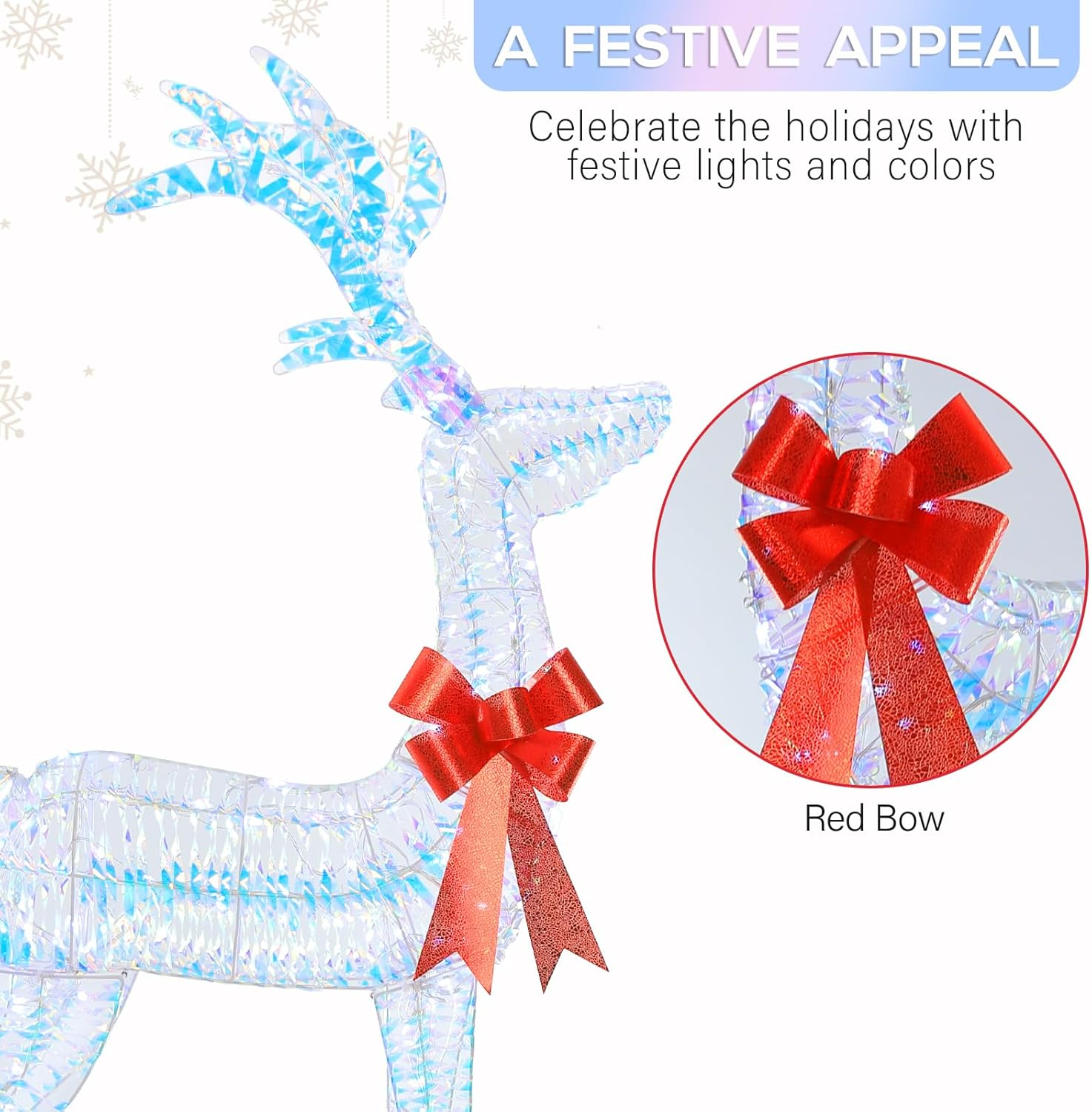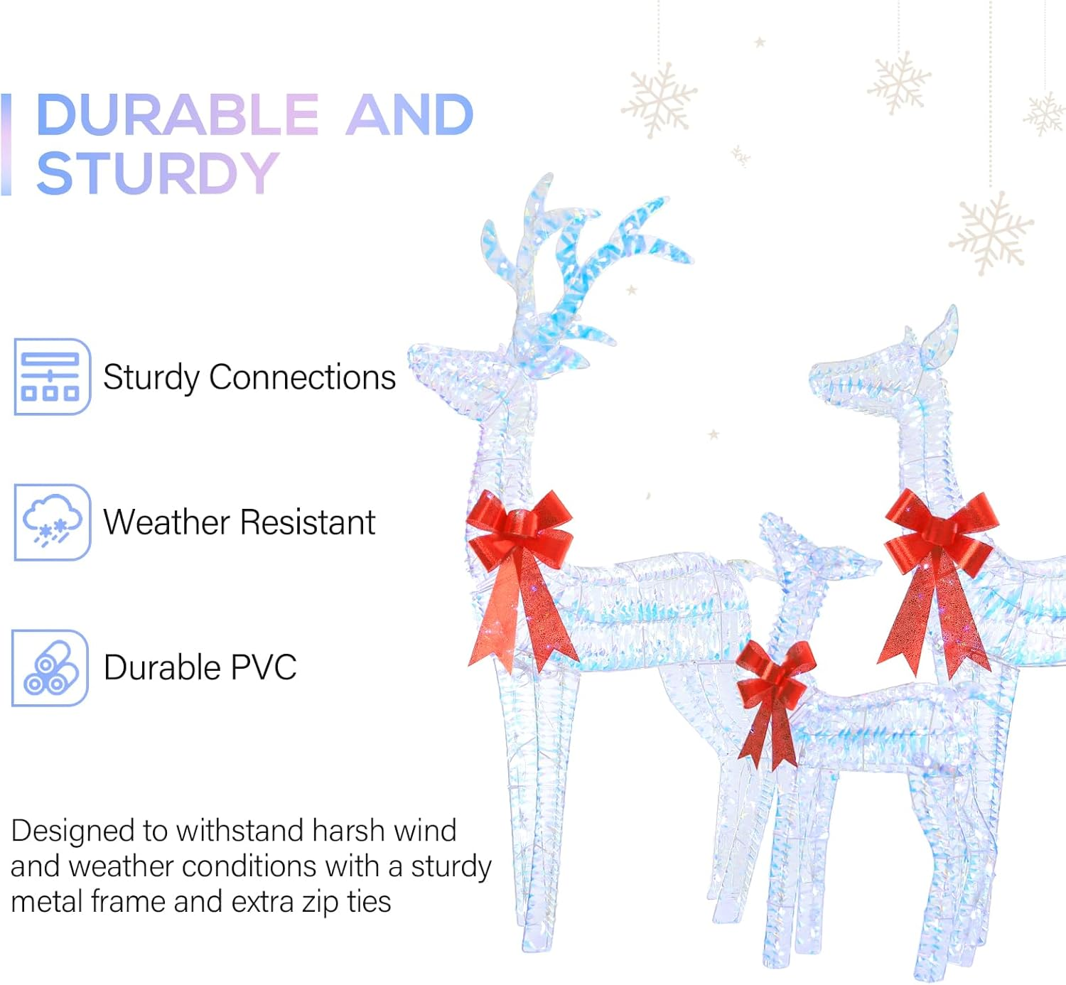 - Durable and Sturdy Construction: Crafted from iridescent materials and supported by stable wire frames, zip ties, and ground stakes, this reindeer set is built to withstand harsh winds and tough weather conditions. For longevity, be sure to store them in a cool, dry place away from direct sunlight when not in use.