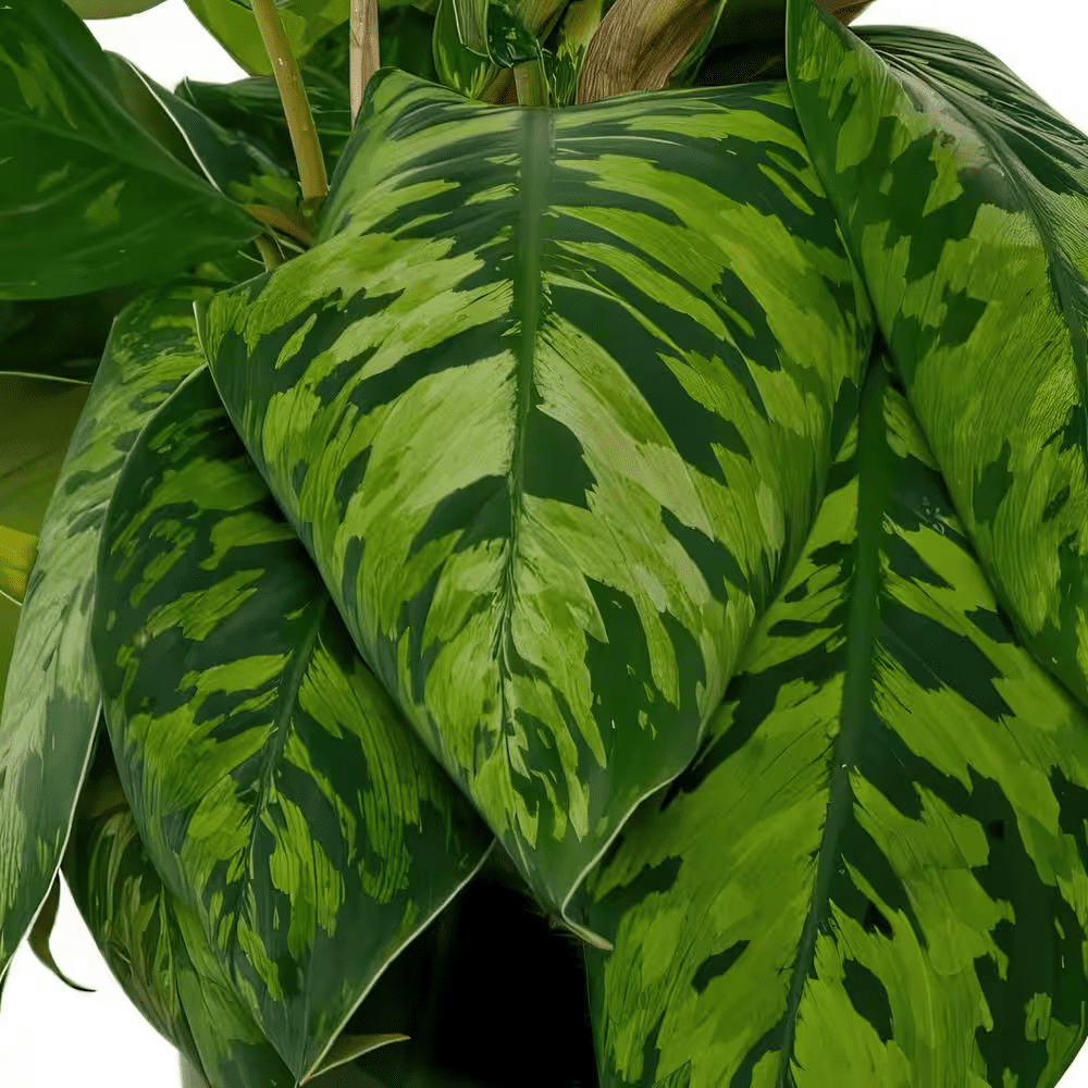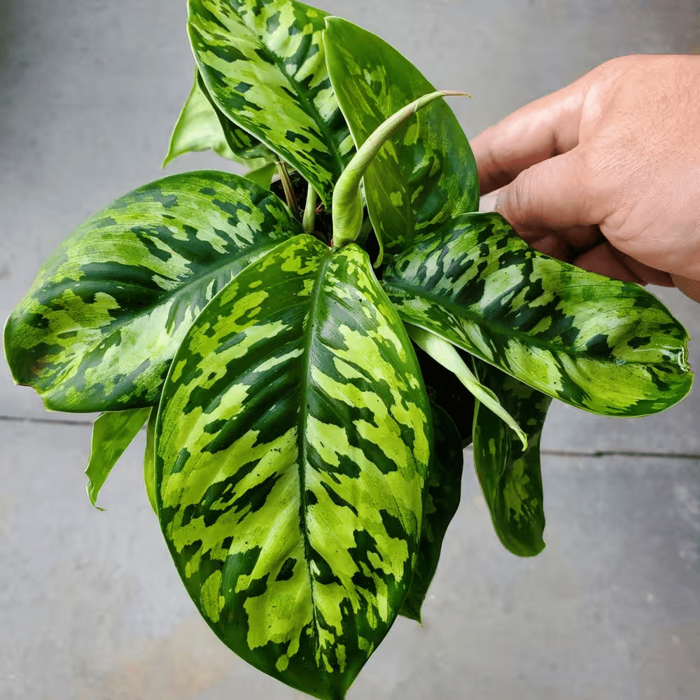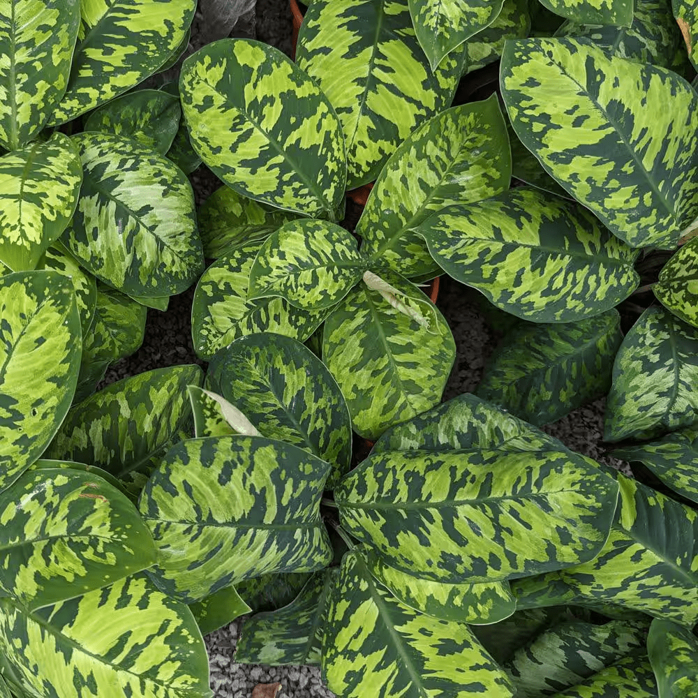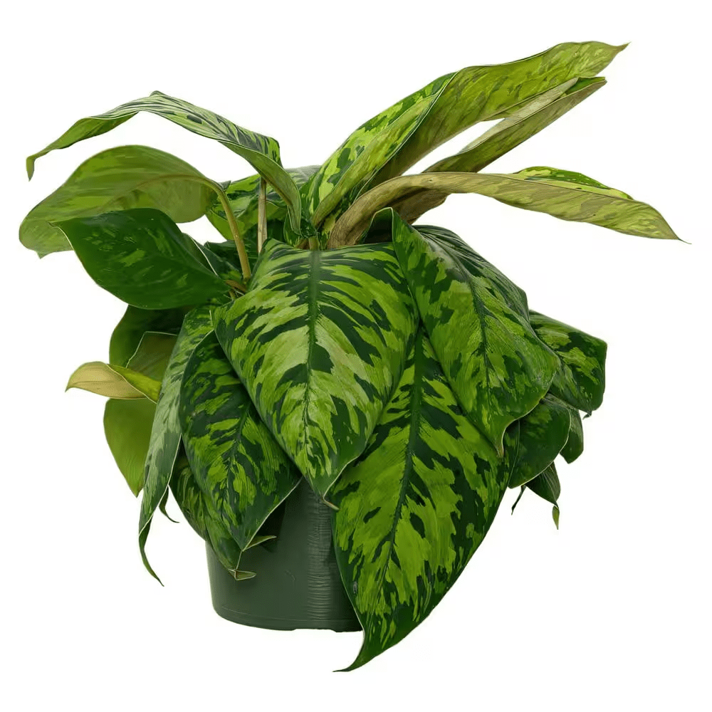 Homalomena Camouflage is a tropical plant appreciated for its unique, dappled green leaves and sturdy appearance. These plants prefer a warm, humid environment with temperatures between 60°F and 85°F, and may benefit from occasional misting. Homalomena enjoy moist, but not wet soil; slightly drooping leaves is a good indicator for watering, and foliage perks right back up after a good drench. Best grown in USDA hardiness zones 10-12, but will perform well as an annual or house plant in all zones.