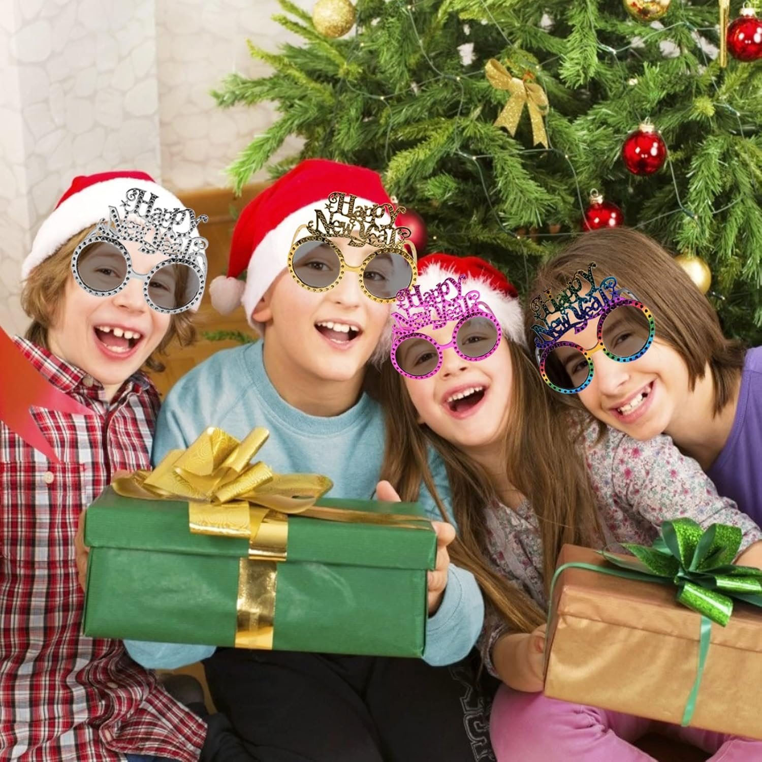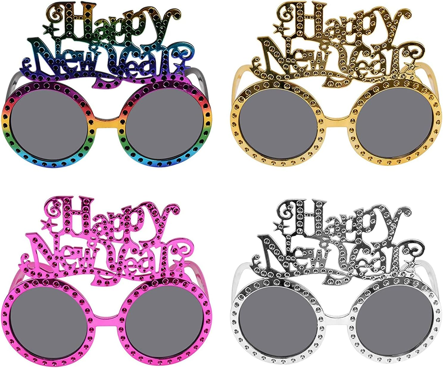You will get 4 different colors of New Year’s glasses, these glasses are perfect for New Year’s Eve, the bright colors can attract everyone’s attention and are the best props for New Year’s party photos.
