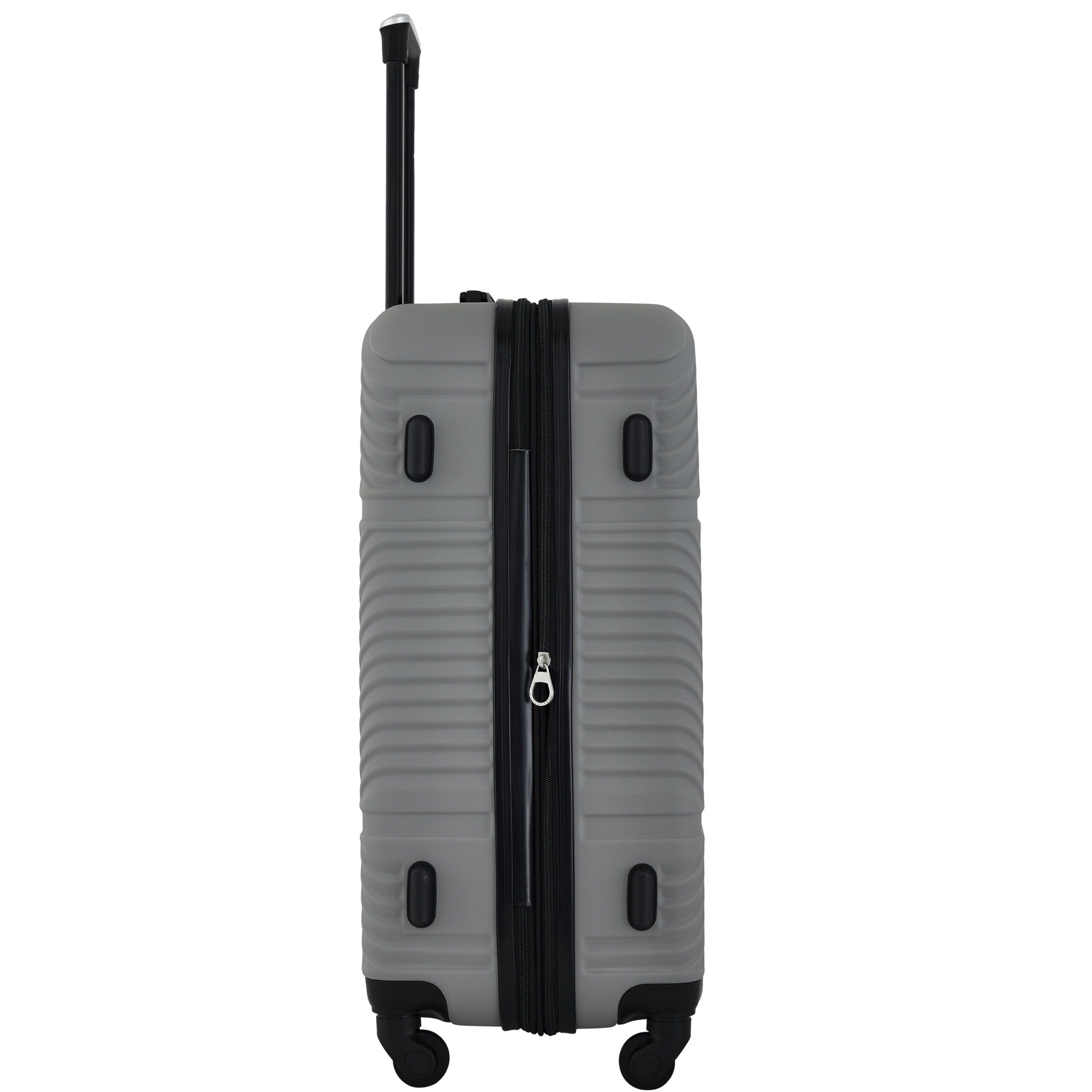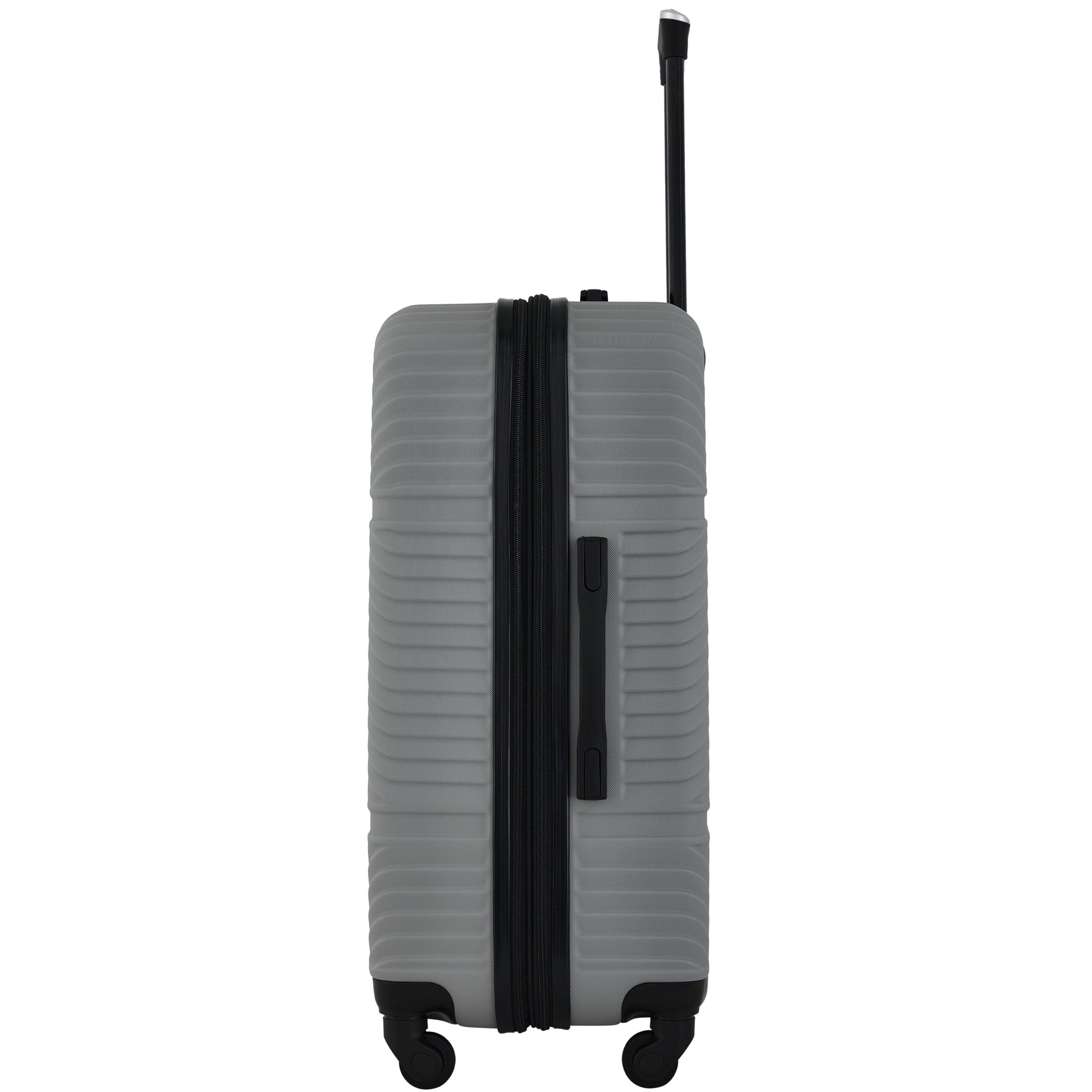 - Set includes a 25” checked rolling suitcase, a 20” rolling carry-on, and a 15” and 12” packing cube