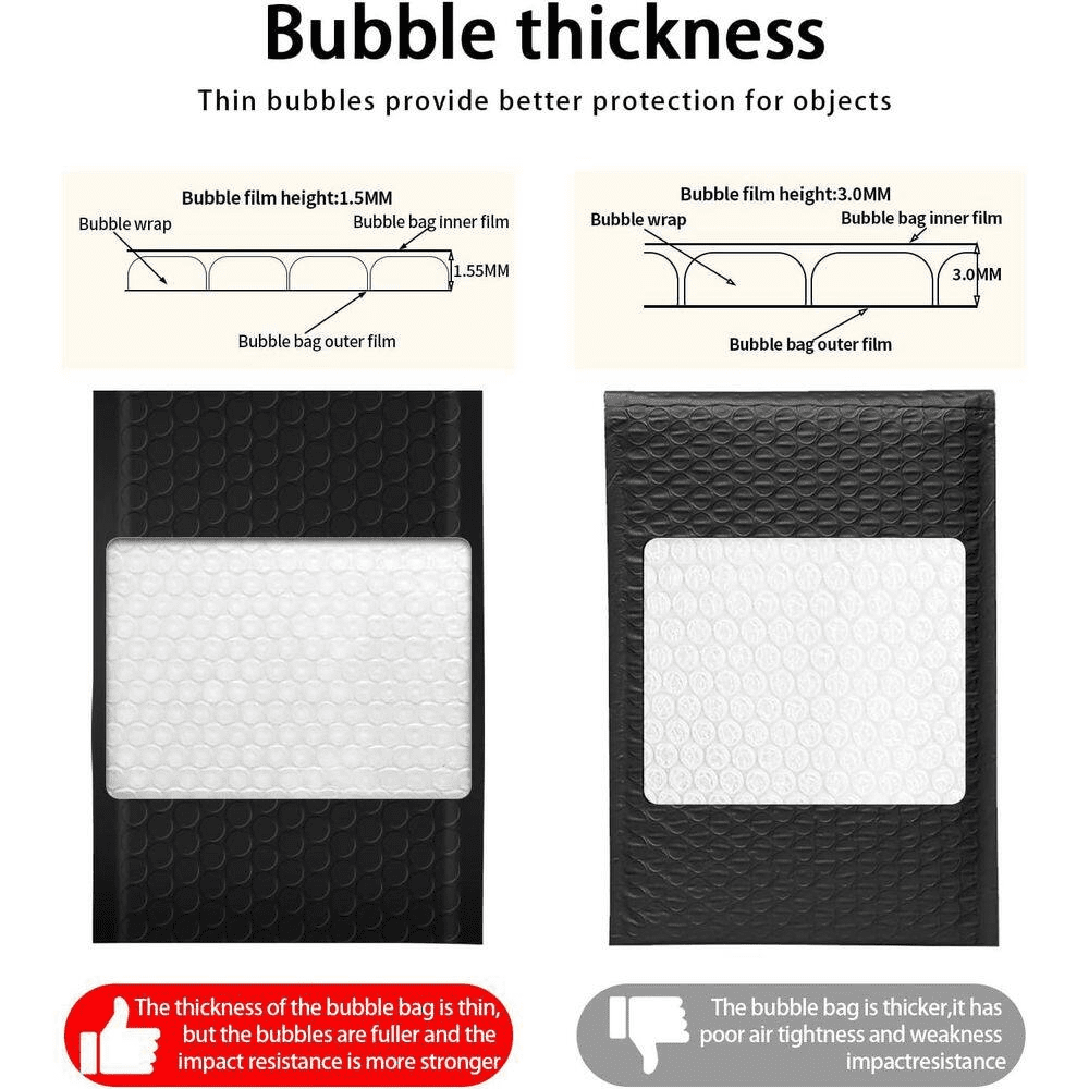 Ensure your items arrive safely with these 4 x 7 in. poly padded bubble mailers, designed with unique air cellular layers and 360° strong air bubble technology to absorb shocks during shipment. The self-sealed, tamperproof envelopes provide a secure seal, while their robust polyethylene construction offers excellent waterproof and tear resistance. Ideal for small to medium businesses, these mailers simplify packaging, save time, and reduce mailing costs, making them perfect for shipping jewelry, cosmetics, and more.