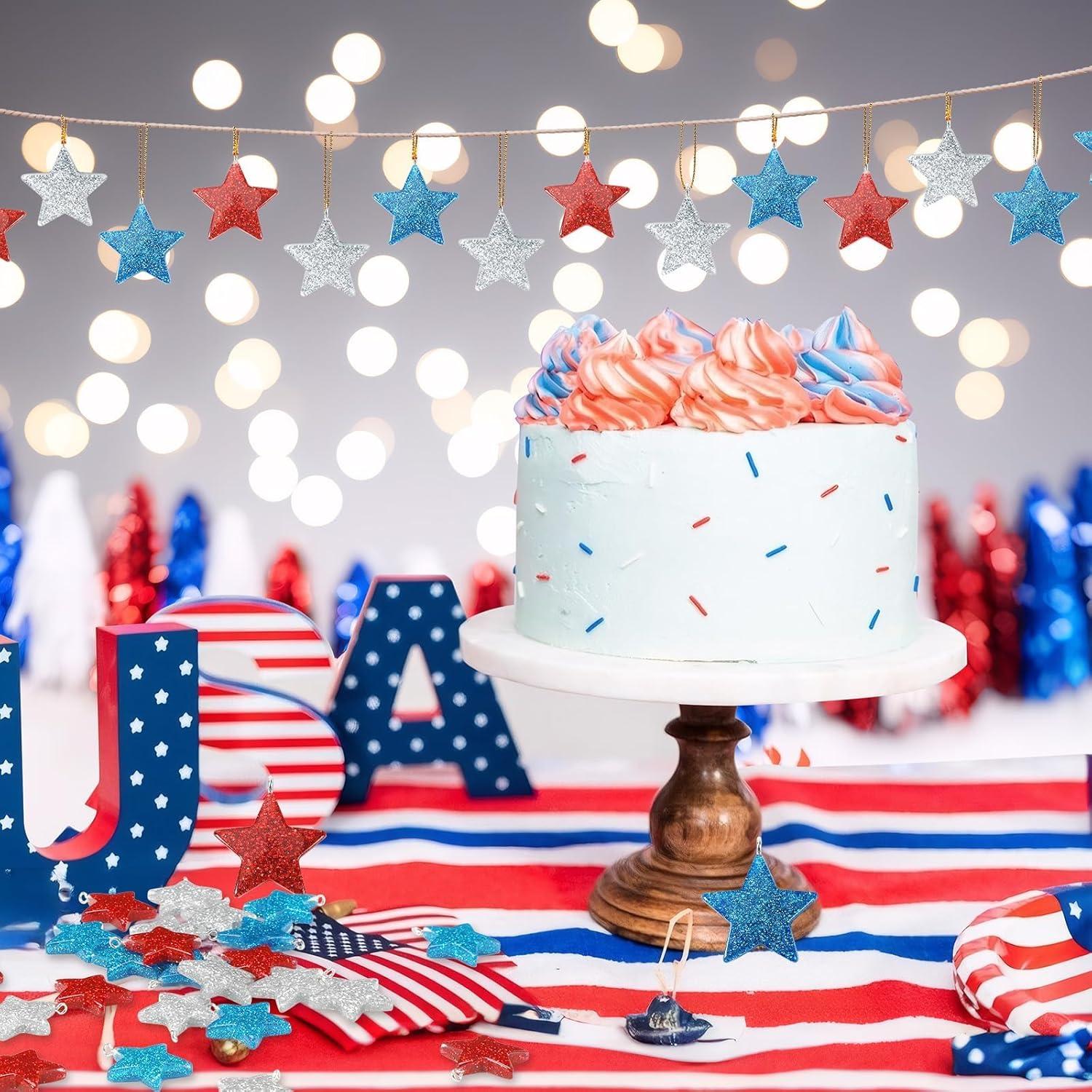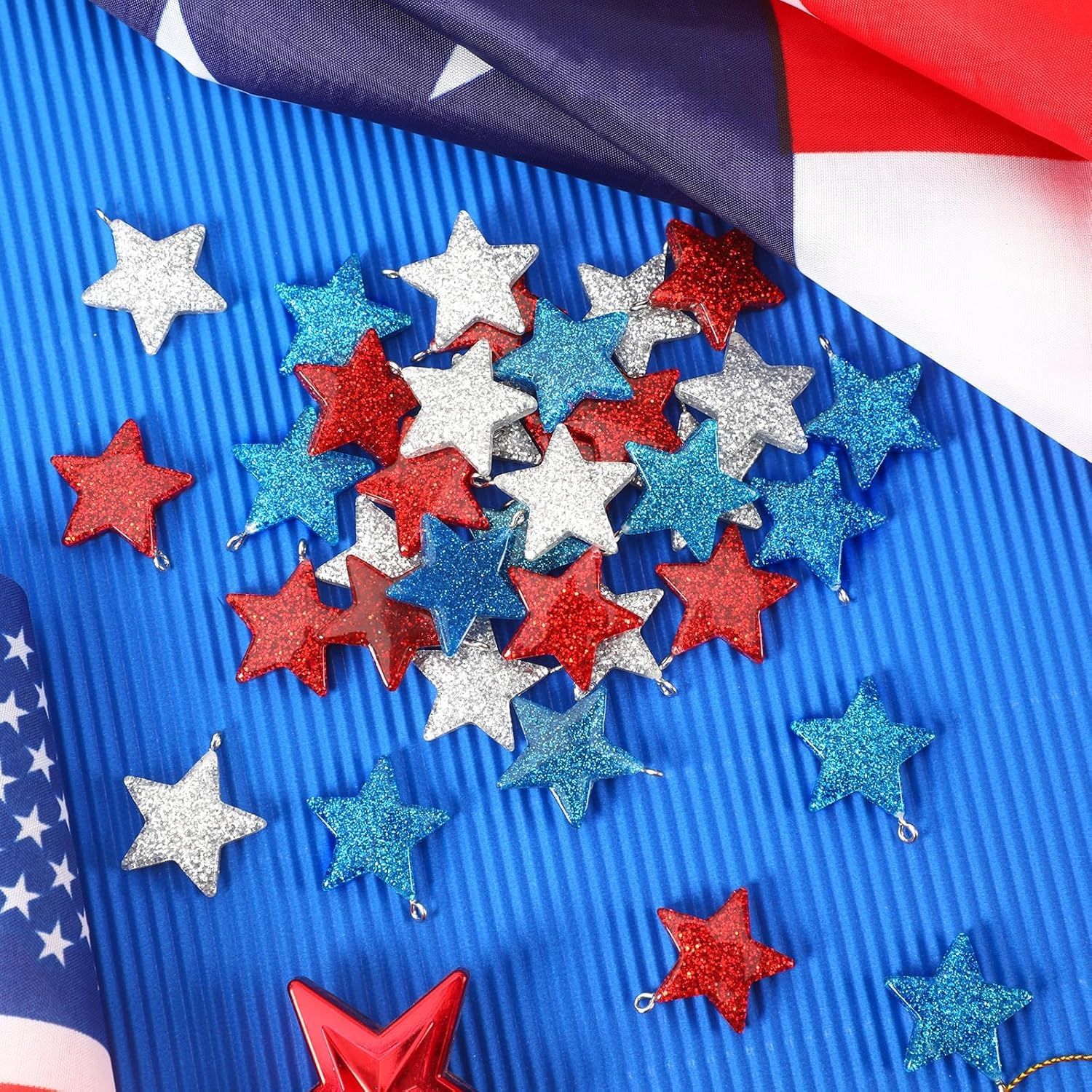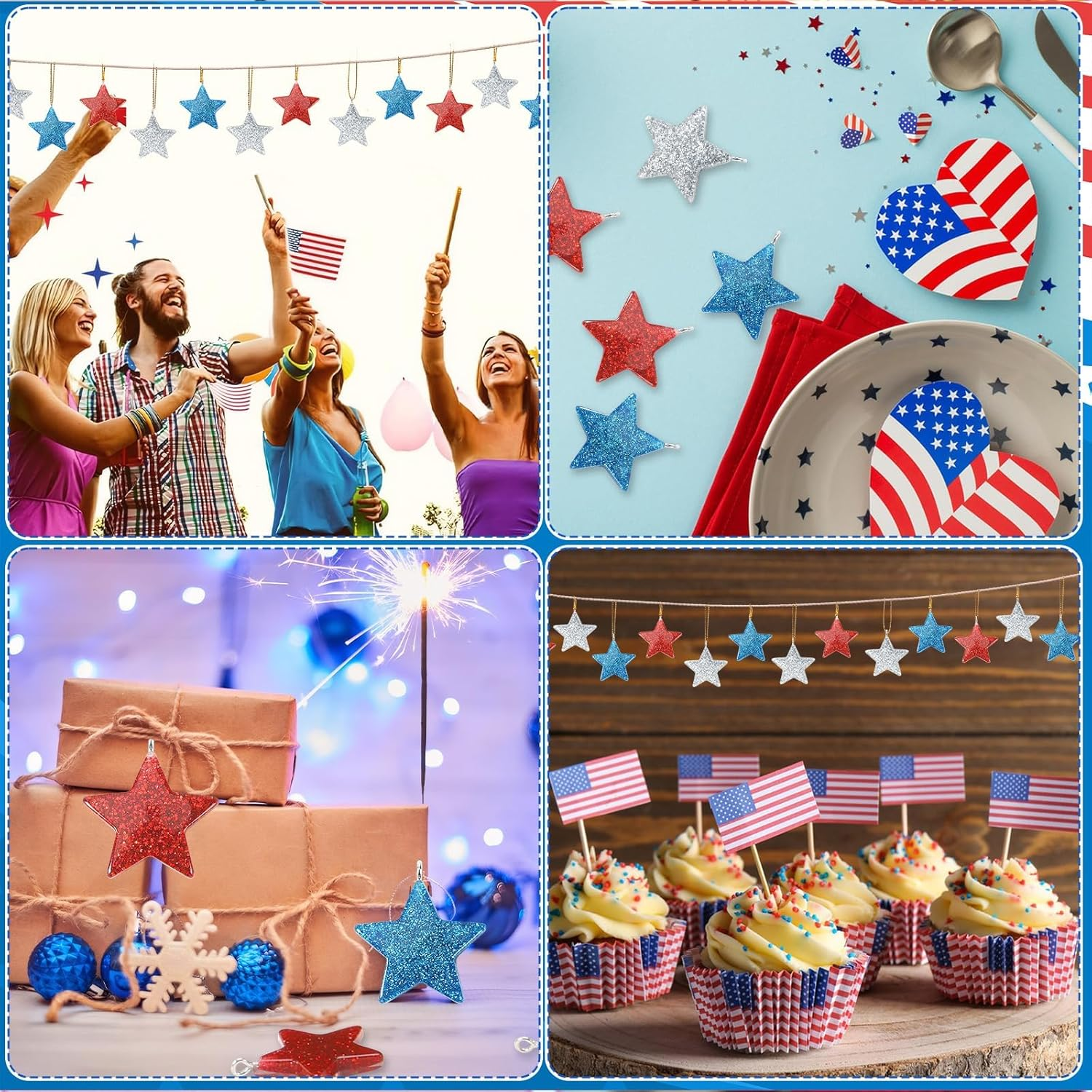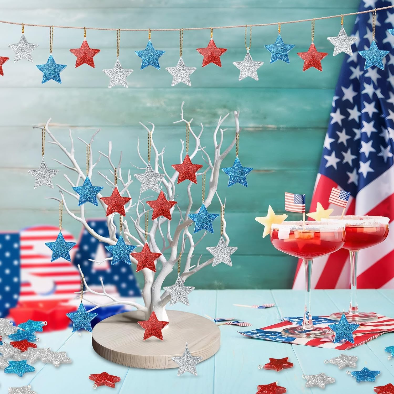 • Show Your Patriotism: These 4th of July star ornaments are ideal for Independence Day, Fourth of July, National Day, Veterans Day, Memorial Day, military family gatherings, offices, schools, outdoor decorations, Christmas trees and American theme party supplies. Star hanging ornaments can be widely used in birthday parties, activity parties, Labor Day, election celebrations, commercial holiday decorations, etc