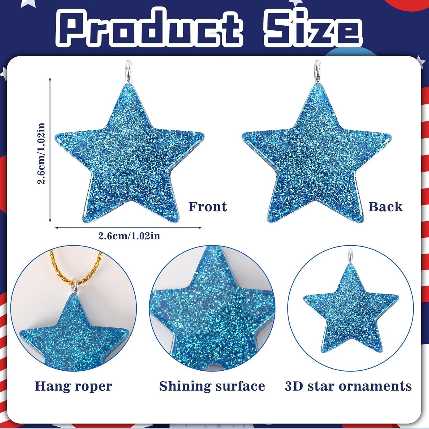 • Mini Size and Easy to Hang: Each 4th of July star ornaments is very small and lovely, about 1 inch in size, suitable for small tree decoration. Each star hanging ornaments set is equipped with a golden string, and you can easily hang these patriotic hanging decorations on branches, windows, red wine bottles, door handles or anywhere else you like