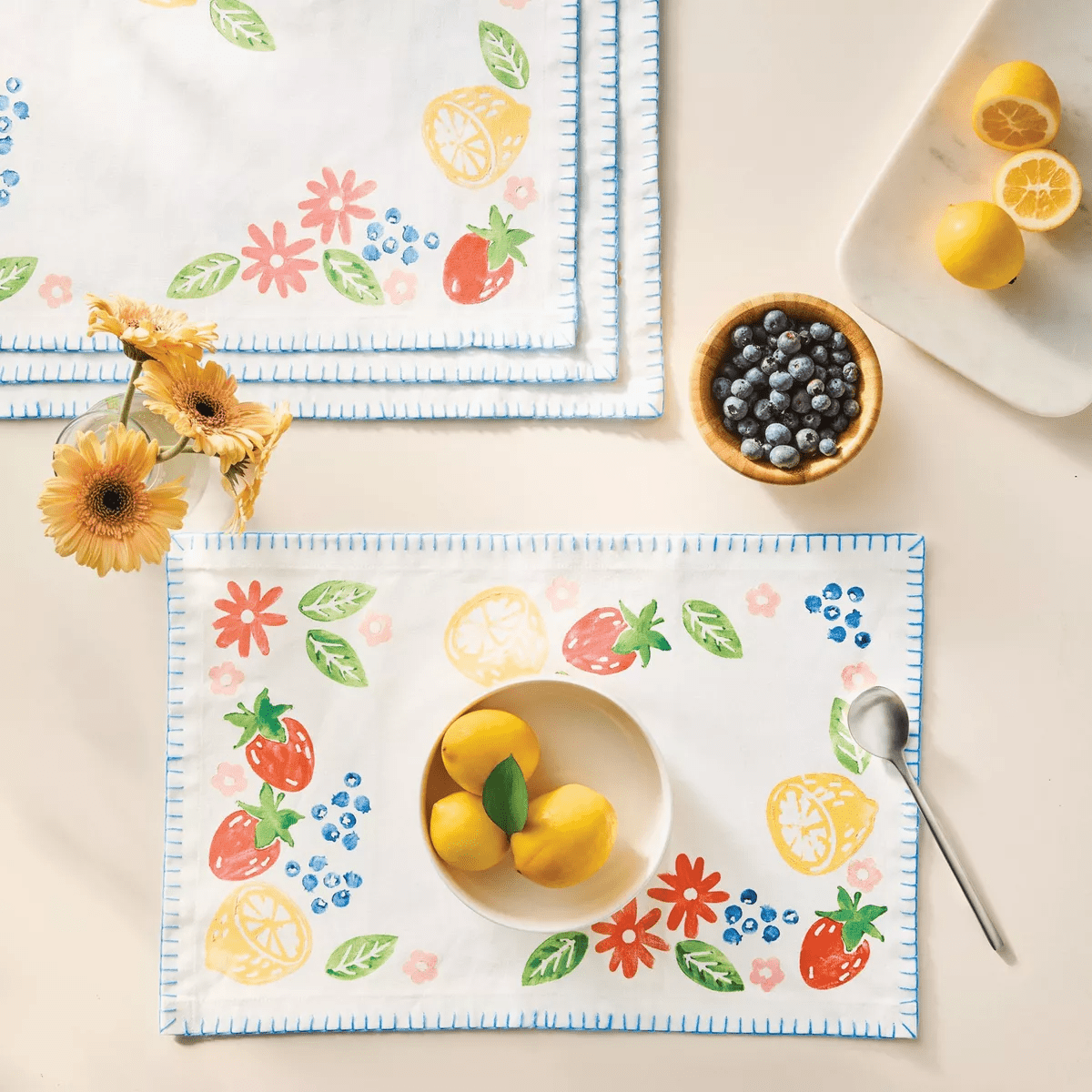 Add an artistic effect to your tablescape with the 4-Count Stamp-Printed Placemats Craft Kit from Mondo Llama™. This placemat craft kit includes a plate, embroidery floss, placemats, paintbrushes and acrylic paints to help provide all the essentials for the craft. Simply stamp the paint patterns to your placemat and add a sweet summery style to your dinner table.