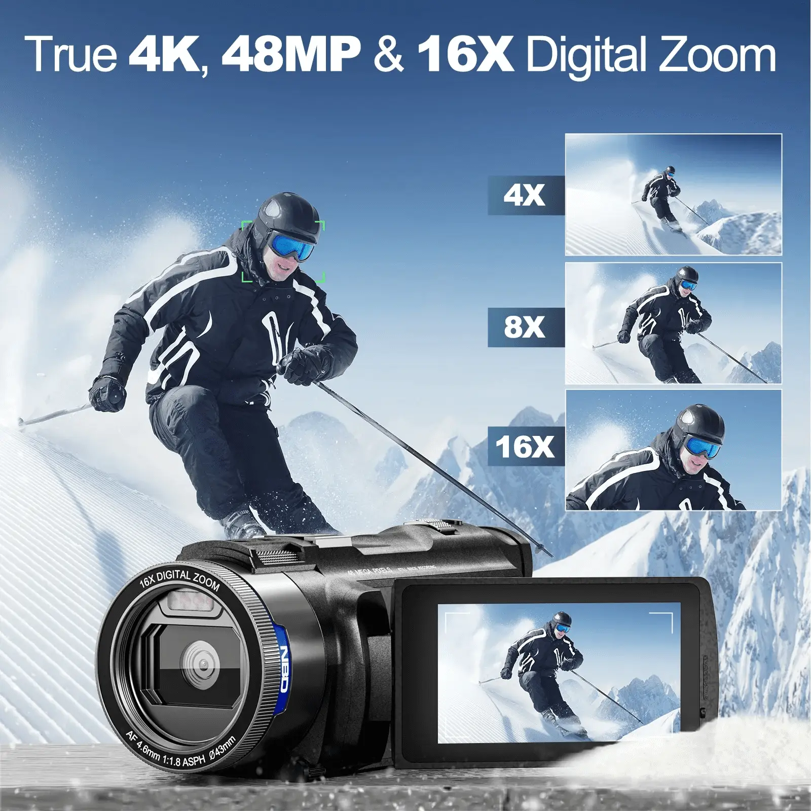 - UHD 4K 30fps & True 48MP Camcorder: Capture every moment in stunning detail with NBD 4K camcorder, featuring true 48.0 MP image resolution and 4K (30fps) video. The 3.0-inch IPS touch screen rotates 270 degrees, offering flexibility for shooting from any angle. Ideal for professional video production, whether creating for large screens or high-quality editing.