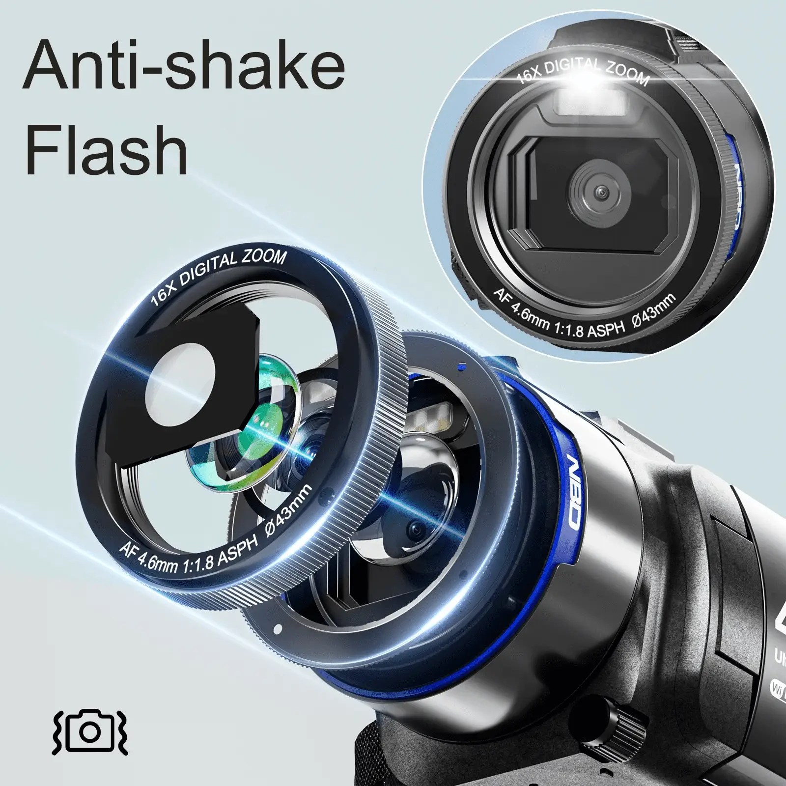16X Digital Zoom for Clear, Crisp Shots: NBD 4K camcorder includes 16X digital zoom, allowing users to get up close to the action without sacrificing image quality. Whether zooming in on distant landscapes or capturing close-up details, every shot will be clear and vibrant.