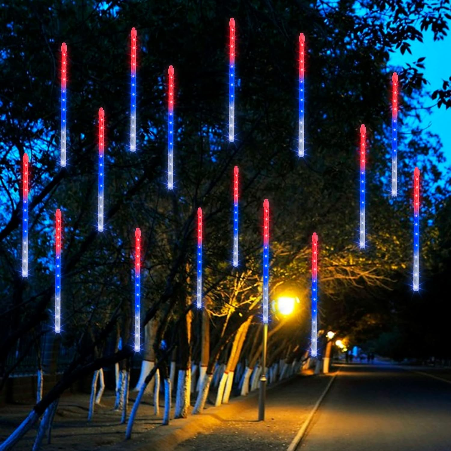 - Perfect Memorial Day Decorations: The Dazzle Bright meteor shower lights is a wonderful ornament to decorate your home, garden, patio, yard, window and courtyard well on Independence Day, very suitable for patriotic party scenes, wedding, holidays, performances, hotels, parks, restaurants