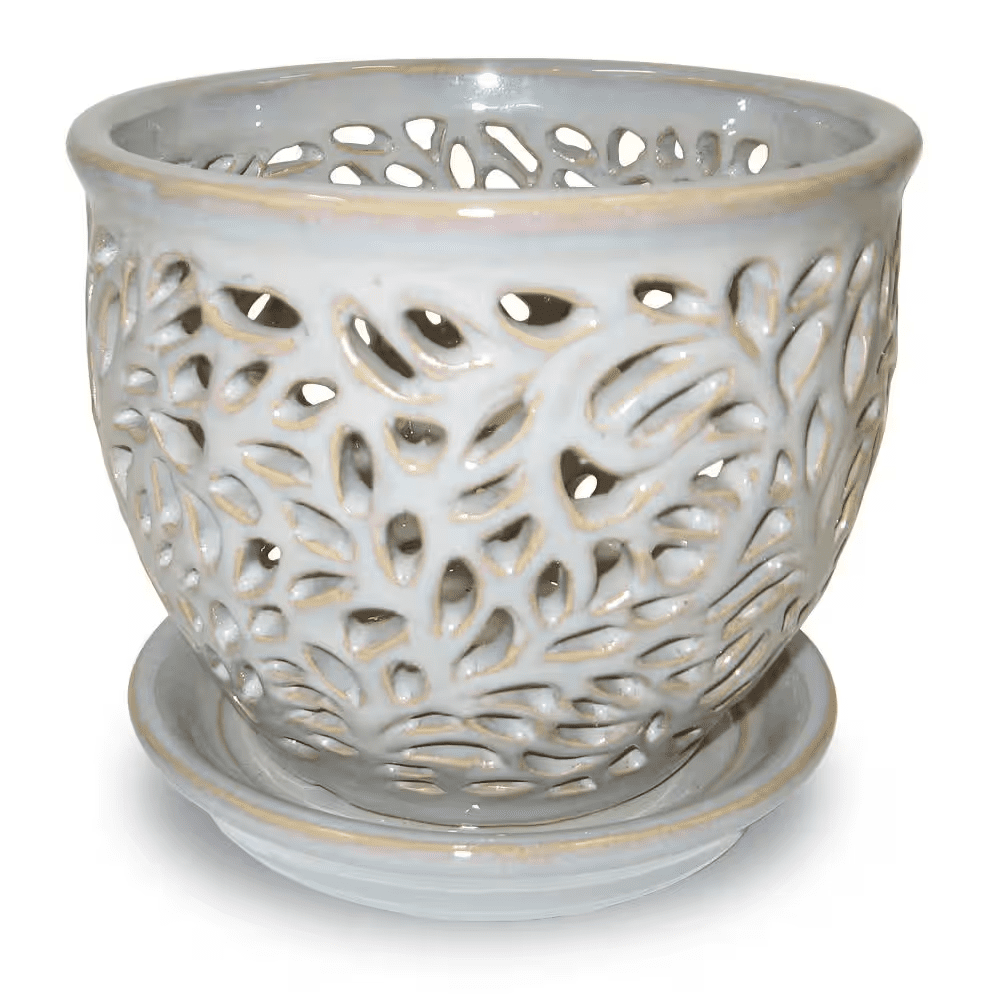Beautiful planter pot decorates any space, making a great gift for Valentine’s Day or Mother’s Day. Trust Vigoro to fulfill your garden needs by using Vigoro’s planters and pots to add an ornate touch to your front porch, patio, living space or window seal. 5.5 in. Dallas Small Gray Lacey Orchid Ceramic Planter features a light grey finish with unique texture that can accept any room. The drainage hole prevents the flower pot from overwatering while holes provide air to orchid roots promoting plant health. The simple design compliments a variety of decor styles.