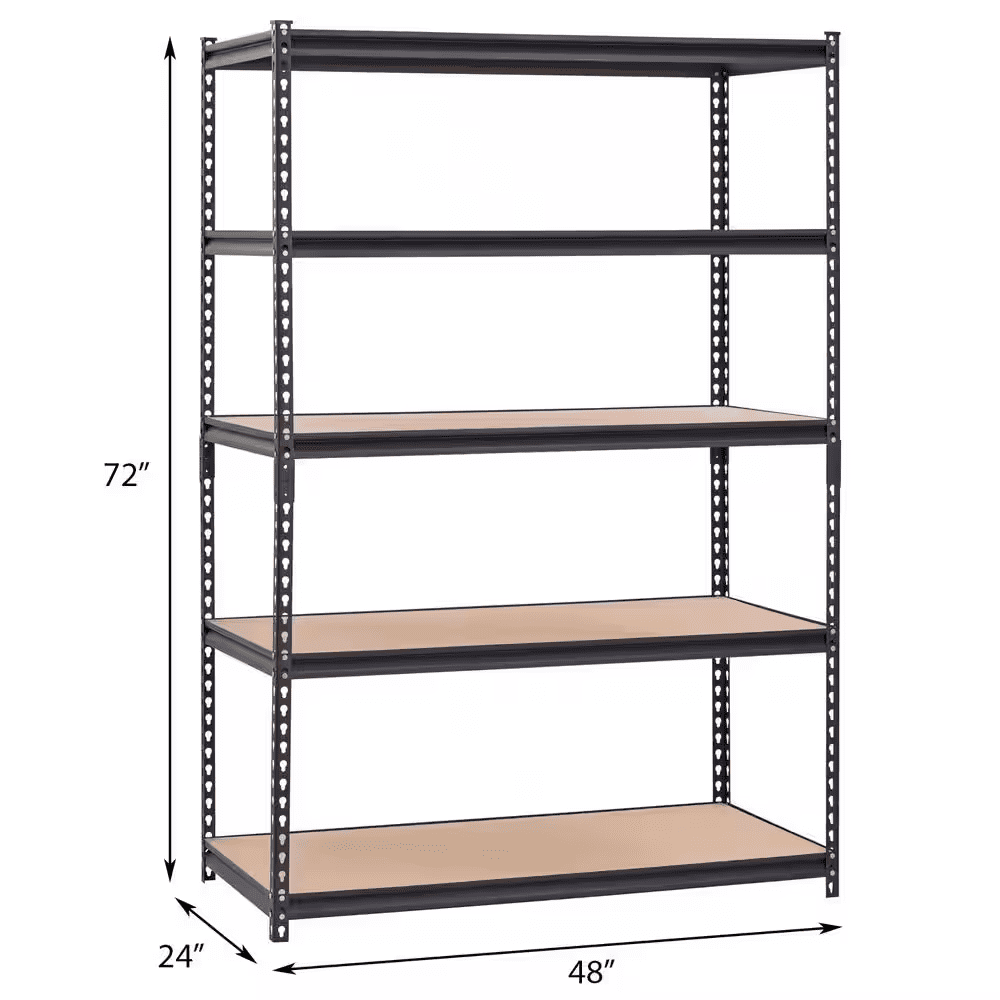 - Heavy-duty steel garage shelf supports up to 800 lbs. per shelf