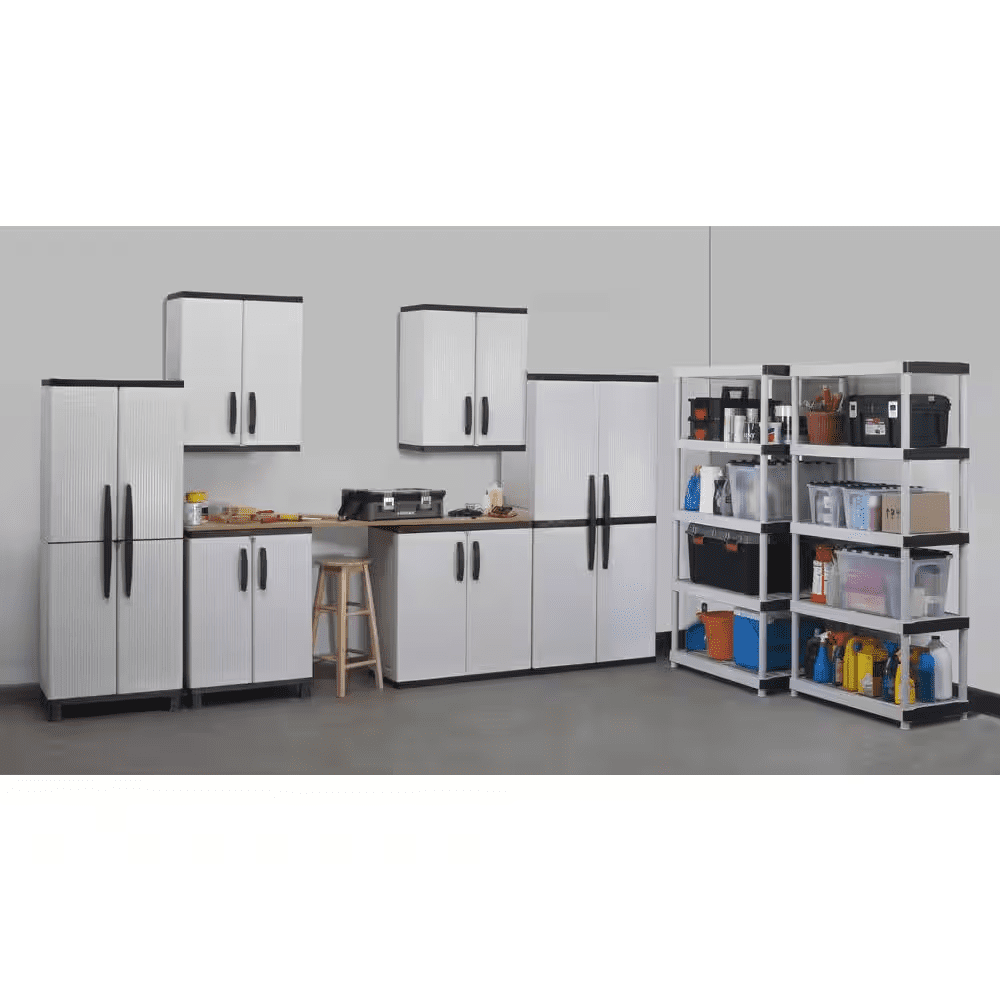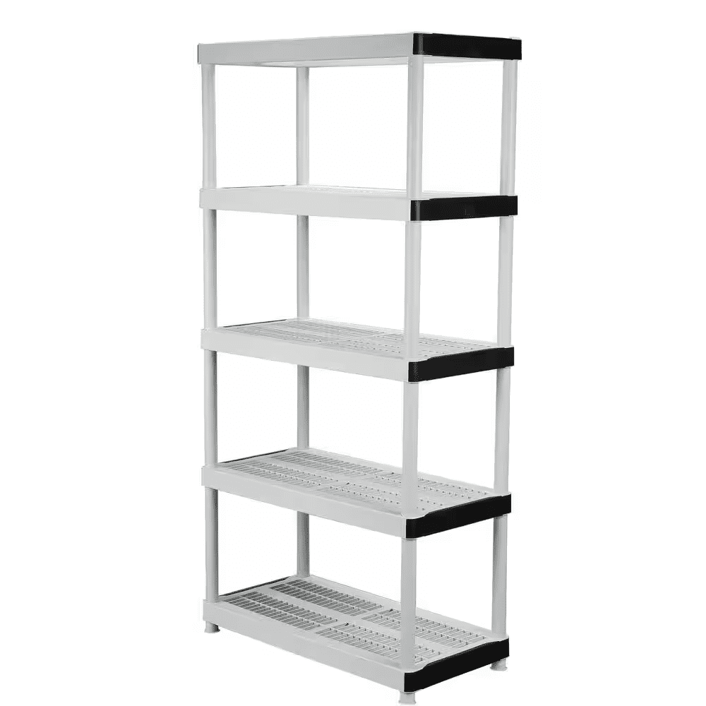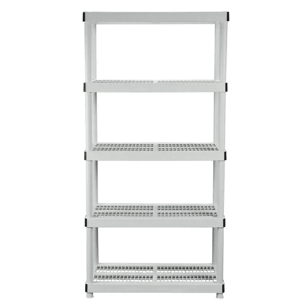 - 5-tier non-adjustable shelf plastic storage shelving rack