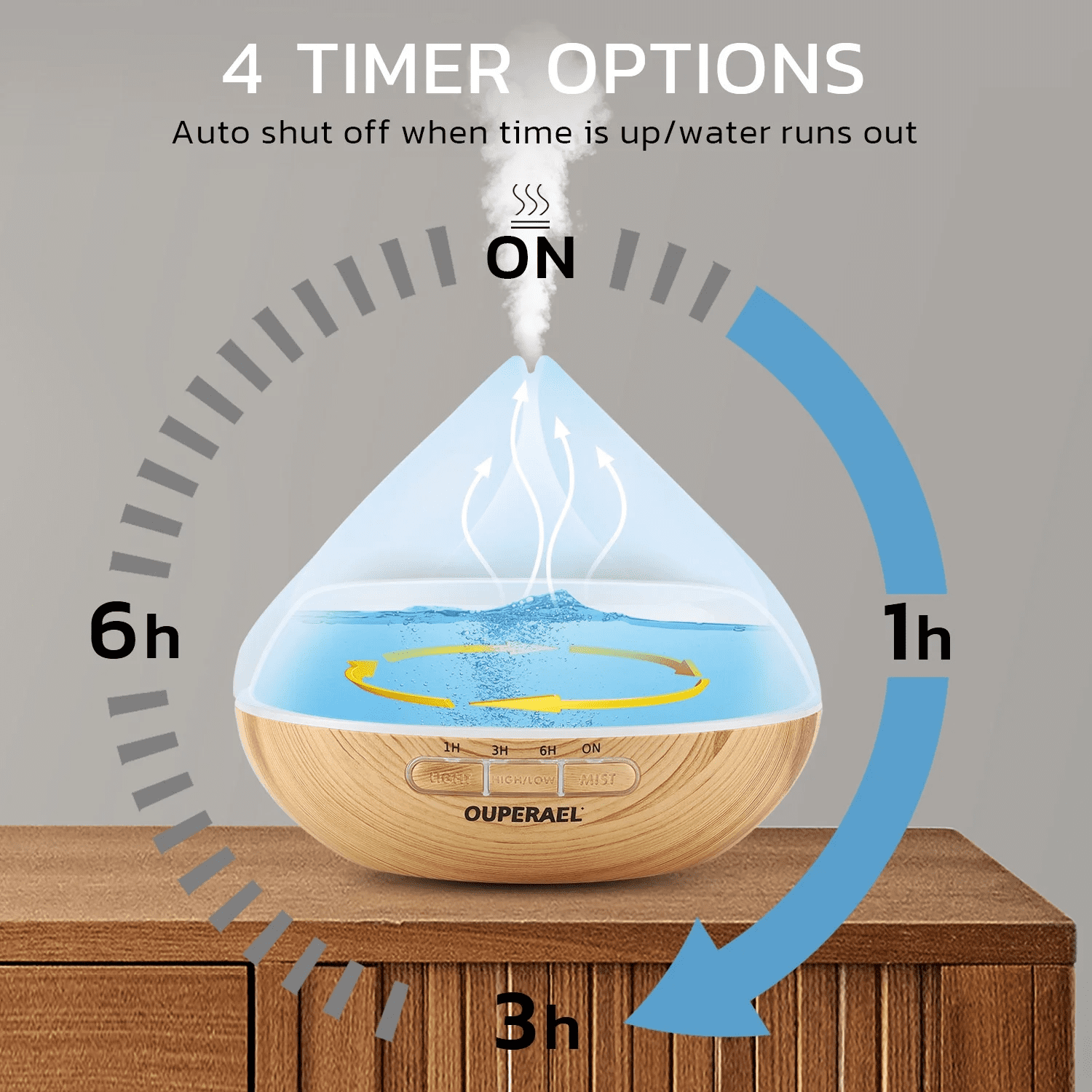 - Wood grain material: The unique design and wood-grain base offer a novel aromatherapy experience, making our humidifier a unique addition to your home!