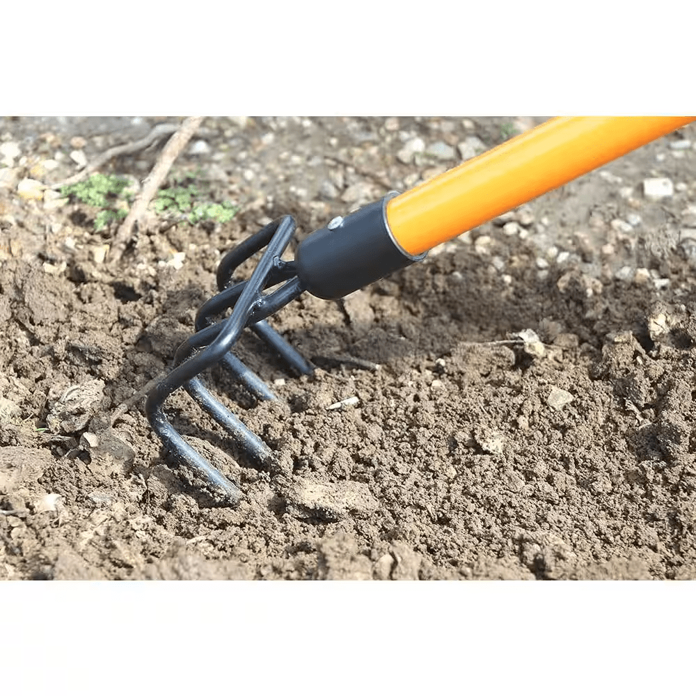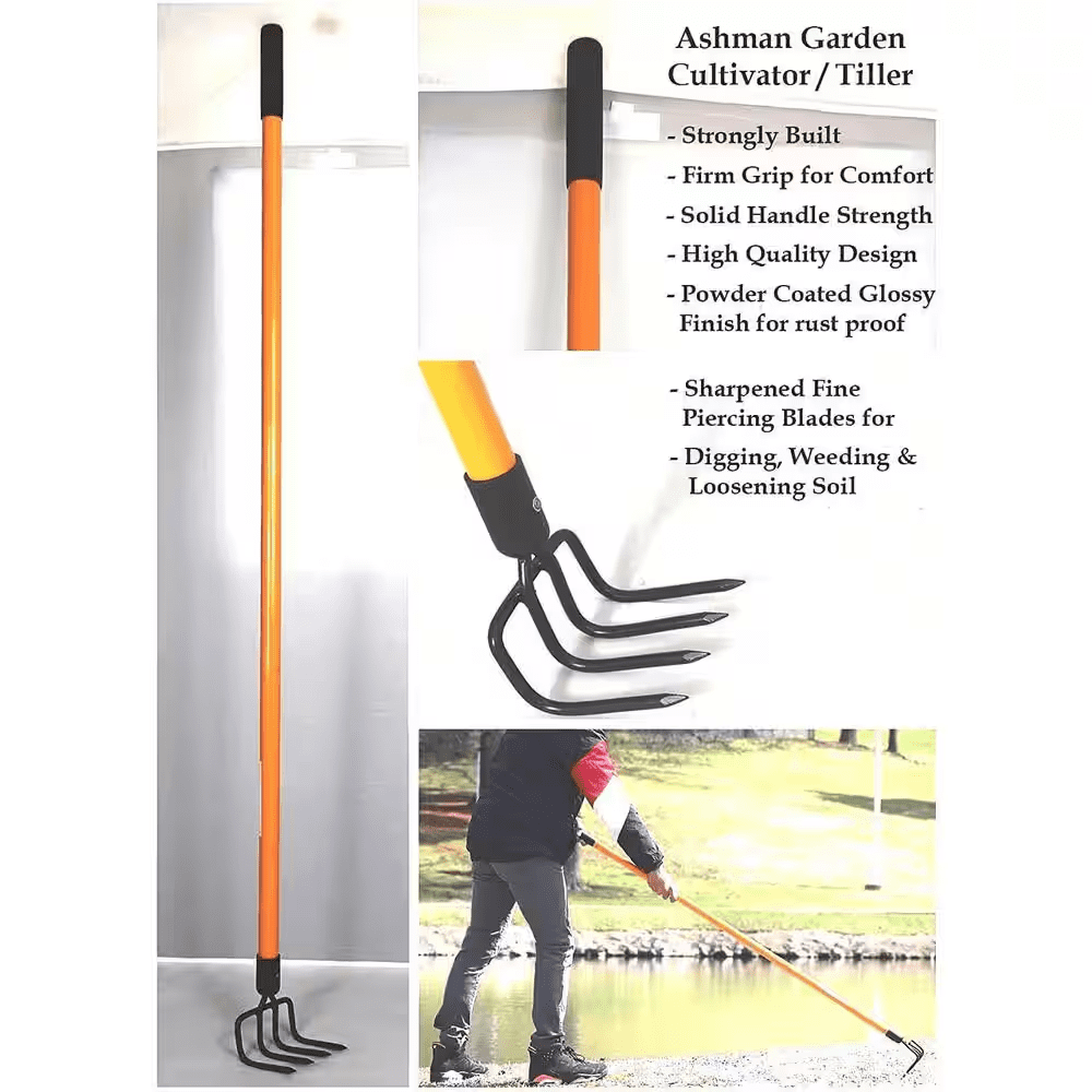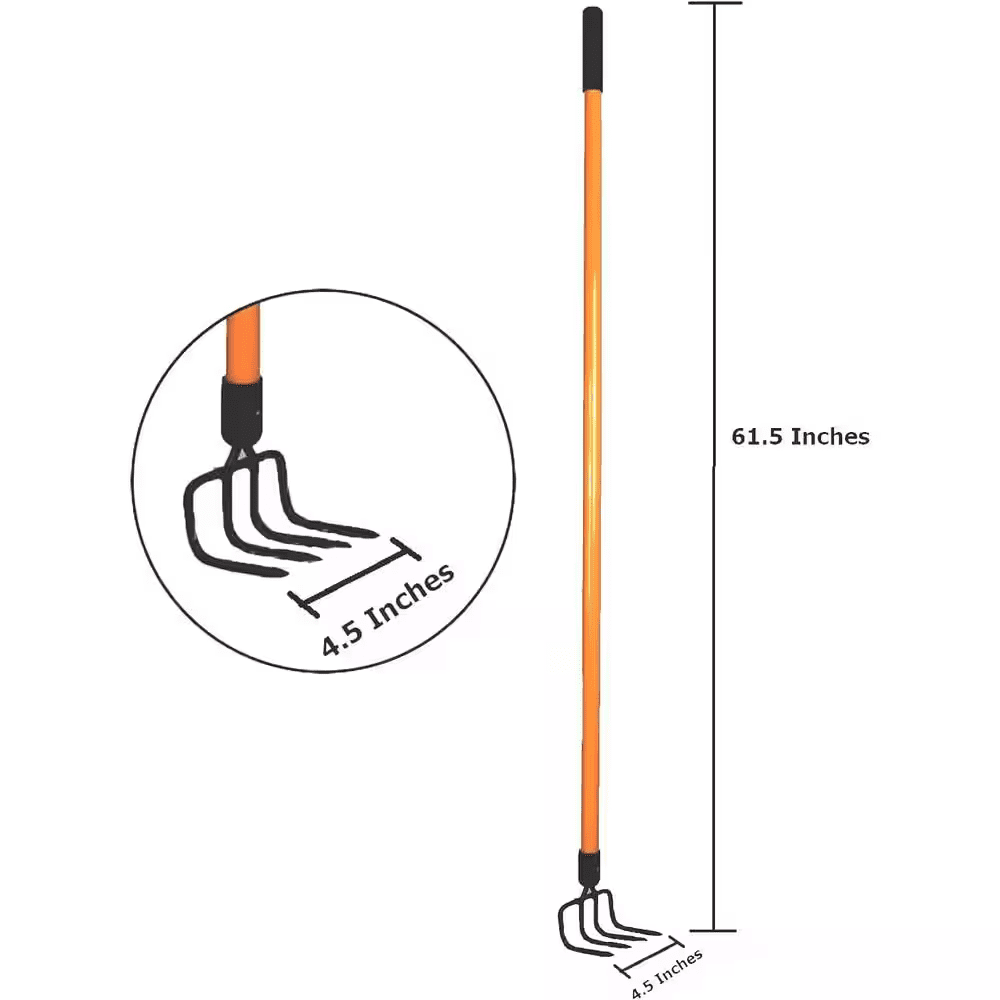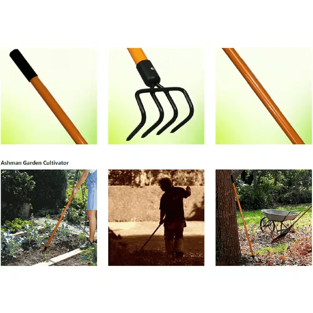 The Ashman 52-inch hand tiller/cultivator rake is a top-quality gardening tool built to handle a variety of soil preparation tasks. With a robust fiberglass handle and comfortable rubber grip, this rake allows for easy maneuverability and reduces strain on your hands and arms. The 5 metal tines are designed to break up compacted soil, loosen dirt, and improve soil aeration. Whether you are preparing garden beds, loosening soil, or aerating, this cultivator rake makes these tasks more efficient and less strenuous. The 52-inch handle provides optimal reach and the fiberglass material absorbs shocks, ensuring you stay comfortable throughout your work. Its lightweight design makes it easy to carry and use, even during extended gardening sessions. The rake’s durable construction allows it to withstand heavy-duty gardening tasks, ensuring a long lifespan. Suitable for a wide range of soil types and gardening needs, the Ashman cultivator rake is ideal for gardeners looking to achieve healthy, well-aerated soil for better plant growth. Whether you are a professional gardener or a hobbyist, this rake will prove to be a valuable addition to your gardening toolkit.