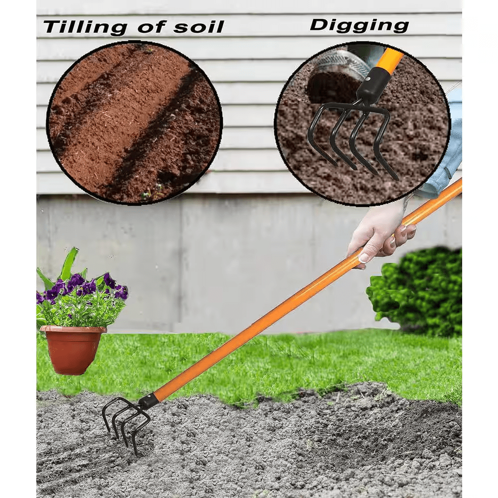 - Sharpened blades for digging, loosening soil and weeding