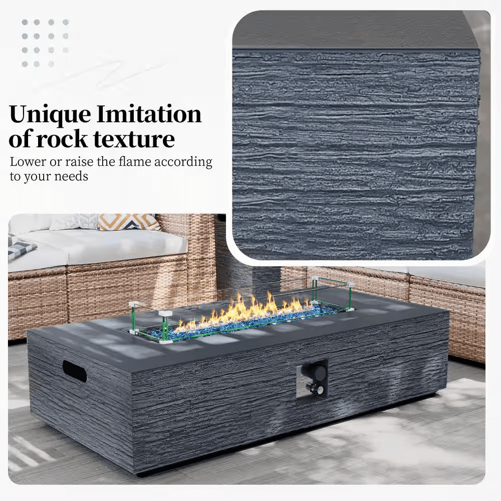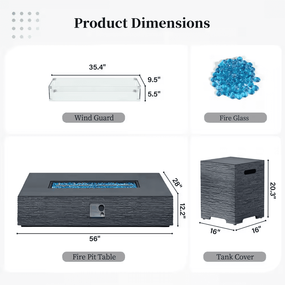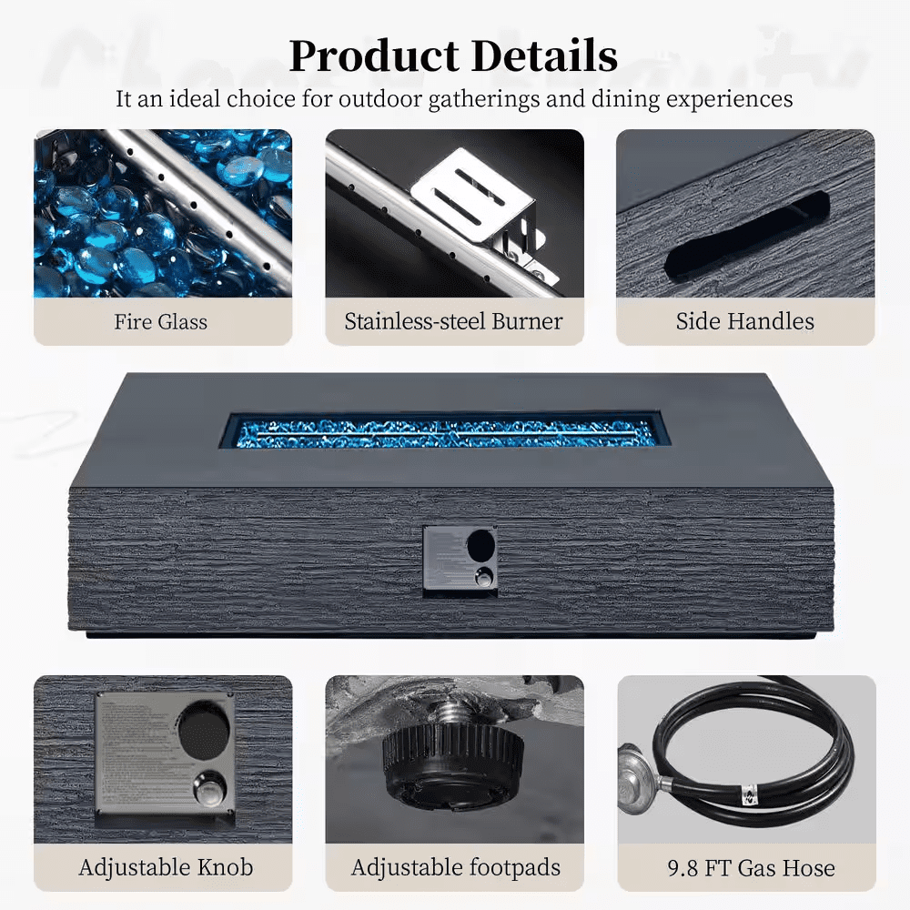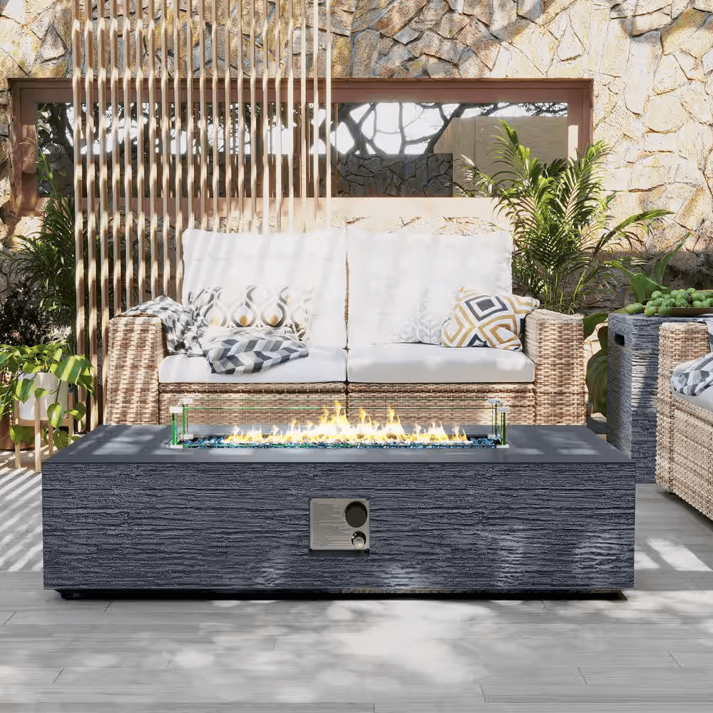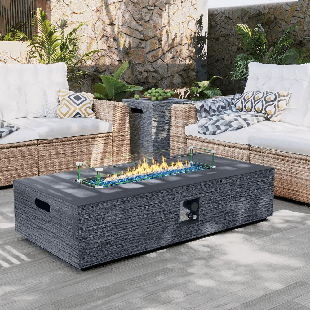 This 56 in. magnesium oxide fire pit table adds warmth and romance to any outdoor space, perfect for fall and winter. Its 50,000-BTU heat output provides cozy warmth, while the pure propane flame creates an inviting atmosphere. Made of high-quality magnesium oxide, it’s durable and modern, perfect for gatherings on your patio, backyard, or balcony.