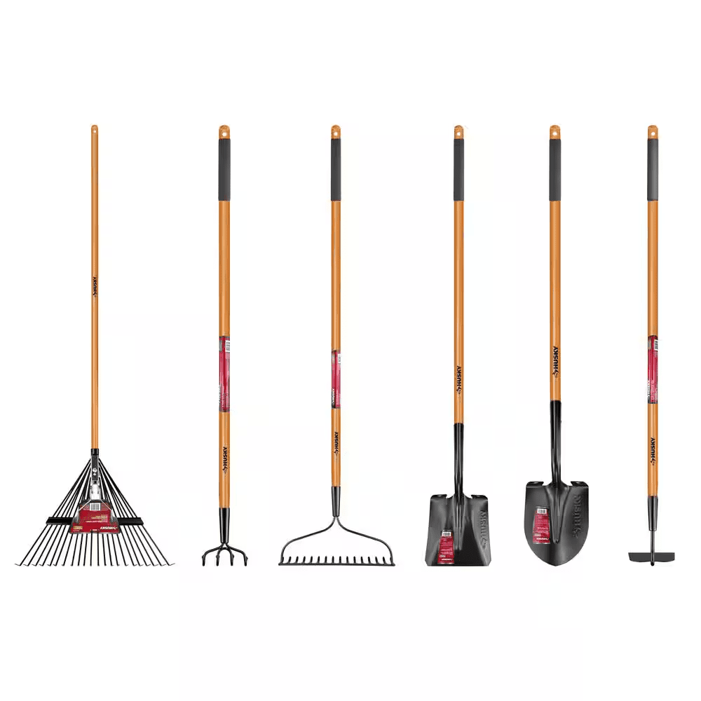 Create the garden that you want with this Six-Piece Garden Tool Set. Use these tools to transfer soil, level the ground, dig, weed and clear debris. The shovels, bow rake, leaf rake, hoe and cultivator provide you with the tools you’ll need to beautify your garden. This is a versatile toolset that can be useful for beginner gardeners. You’ll have durable versions of the tools you may need the most to get your garden off to a good start. It features eucalyptus hardwood handles to help you get a good grip on the tool while you use it. The full-tempered blades bring added durability and longevity.