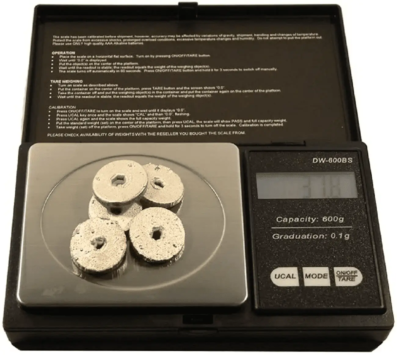 • Accuracy: 0.1 Gram / 0.005 Ounce / 2 Grain / 0.1 Penny Weight