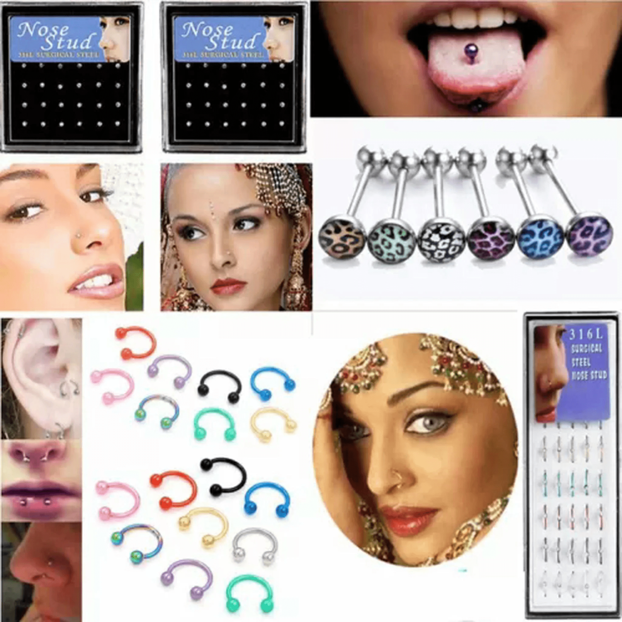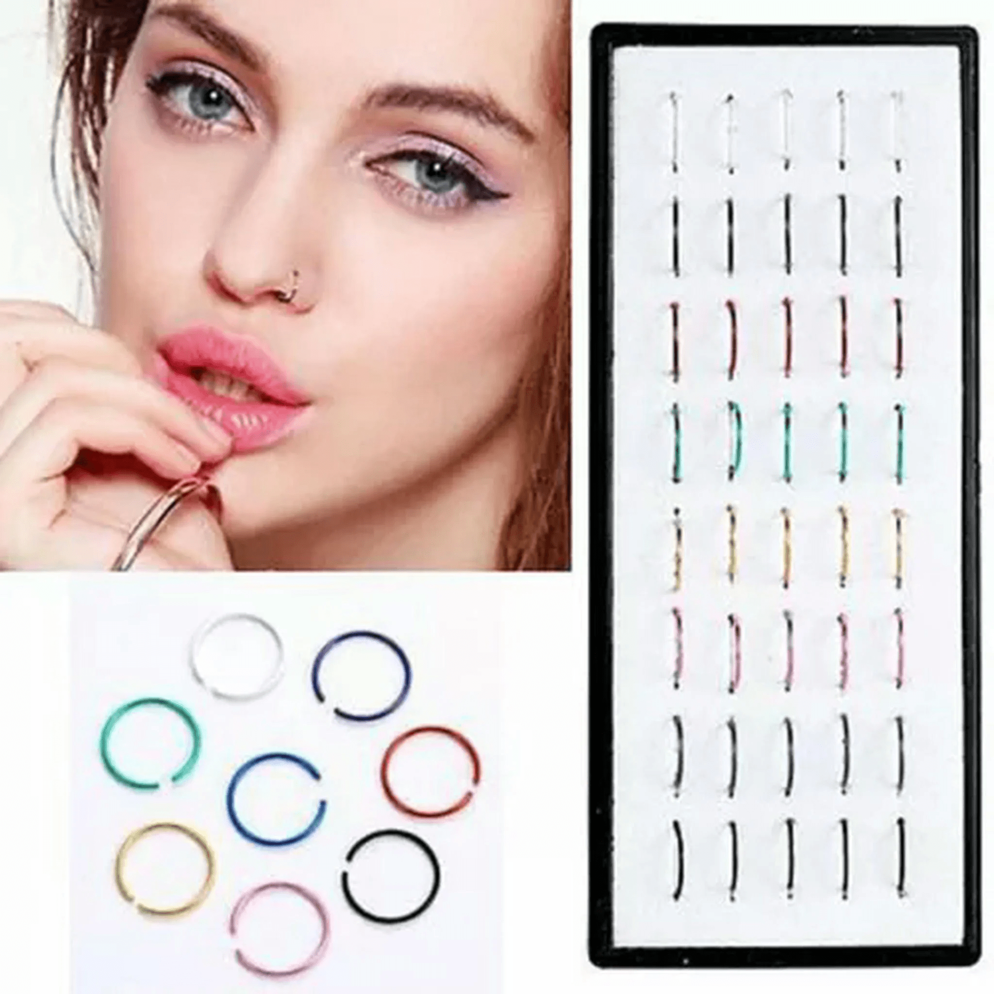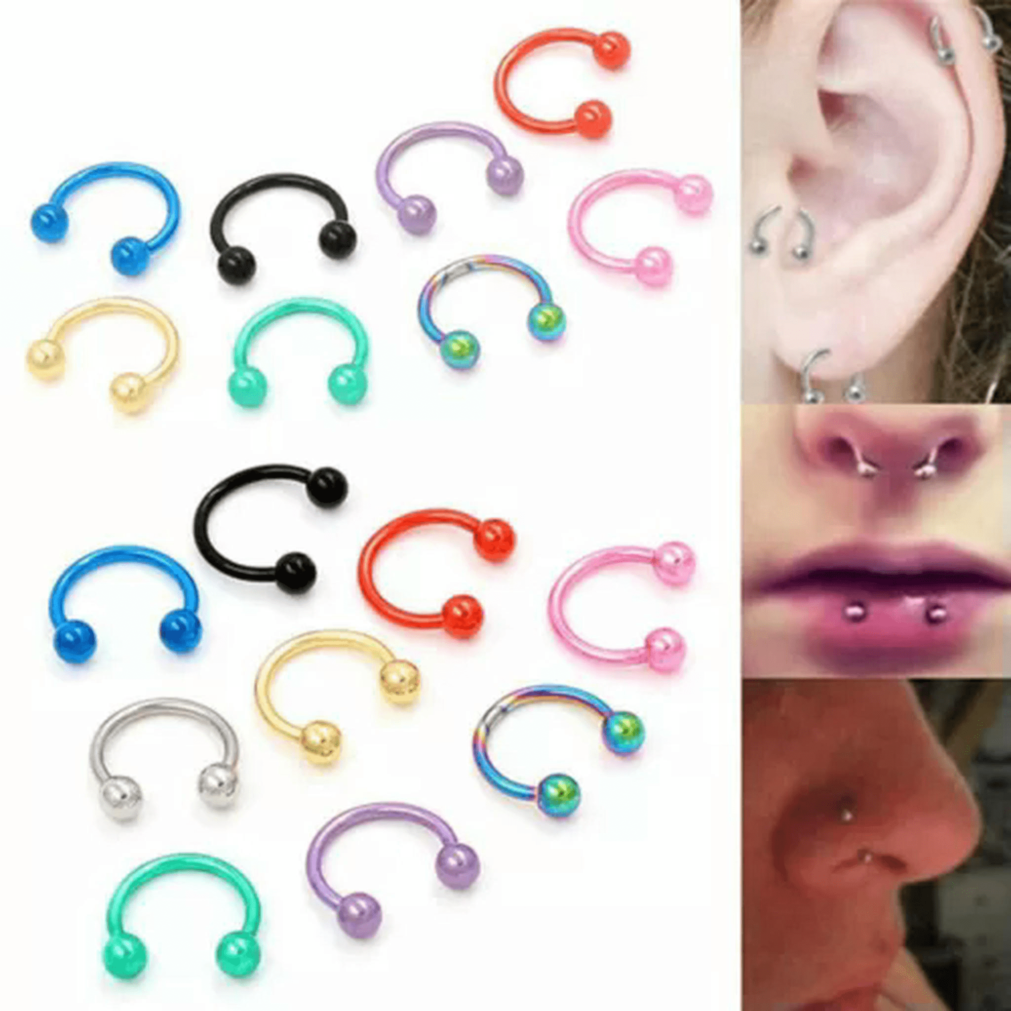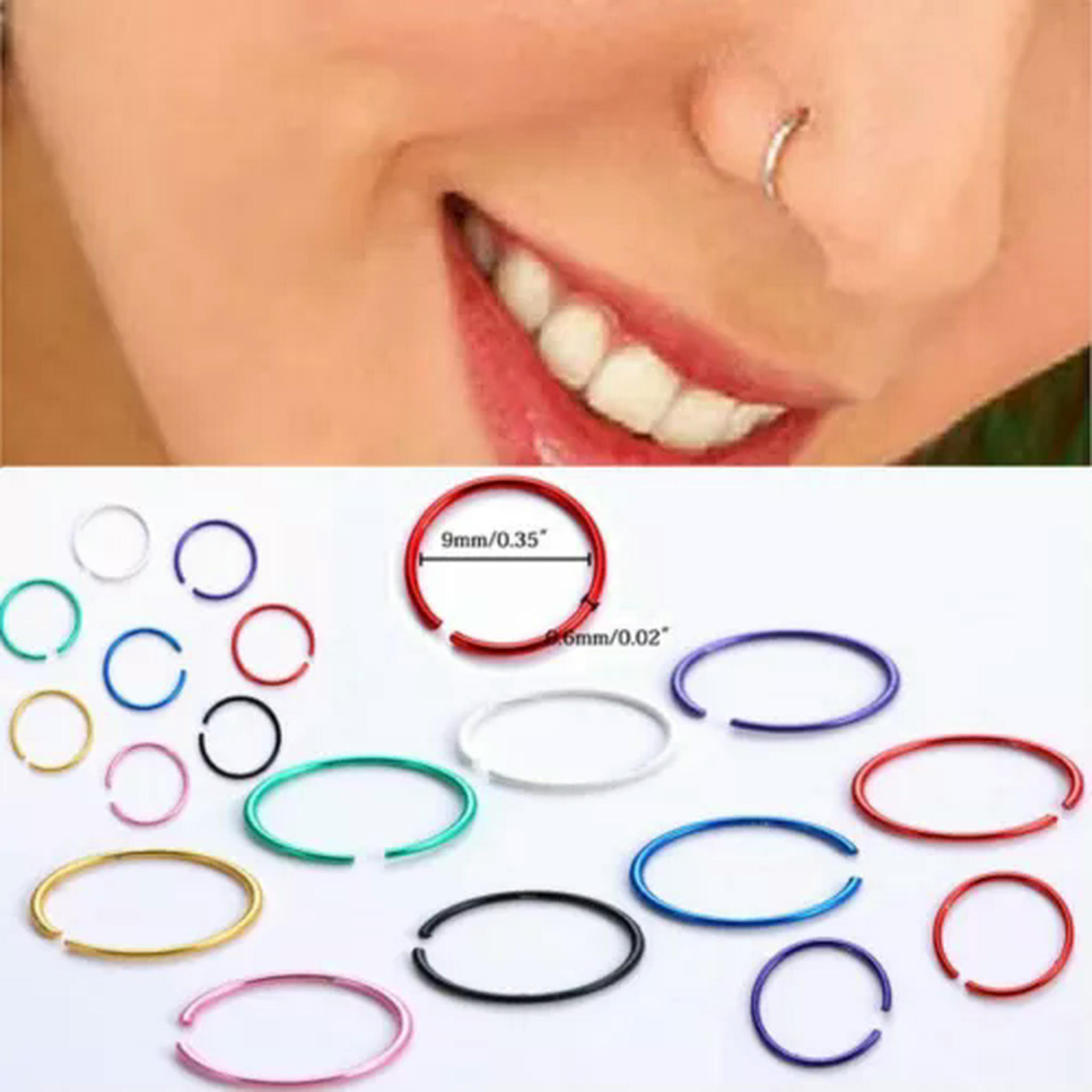 60Pcs Steel Body Piercing Nose Ear Hoop Bone Rings Lip Segment Jewelry-10mm-Colorful