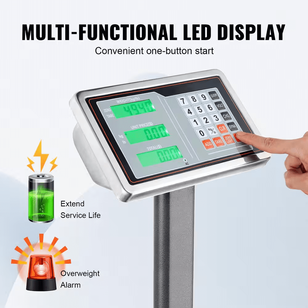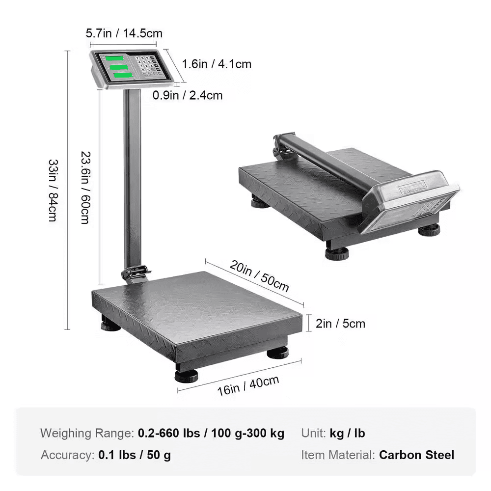 660 lbs. Computing Digital Scale. Looking for an instant and accurate weighing solution. Choose SKYSHALO’s digital computing platform scale with various functions to make weighing quick and easy. With an accuracy of 0.1 lbs. (50 g), it’s the perfect choice for you.