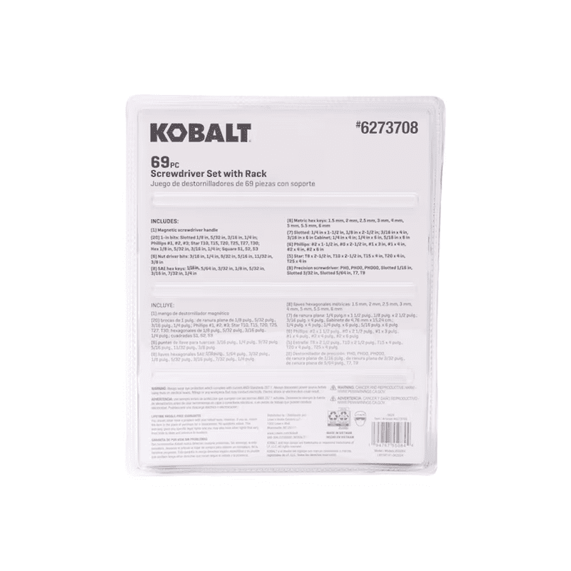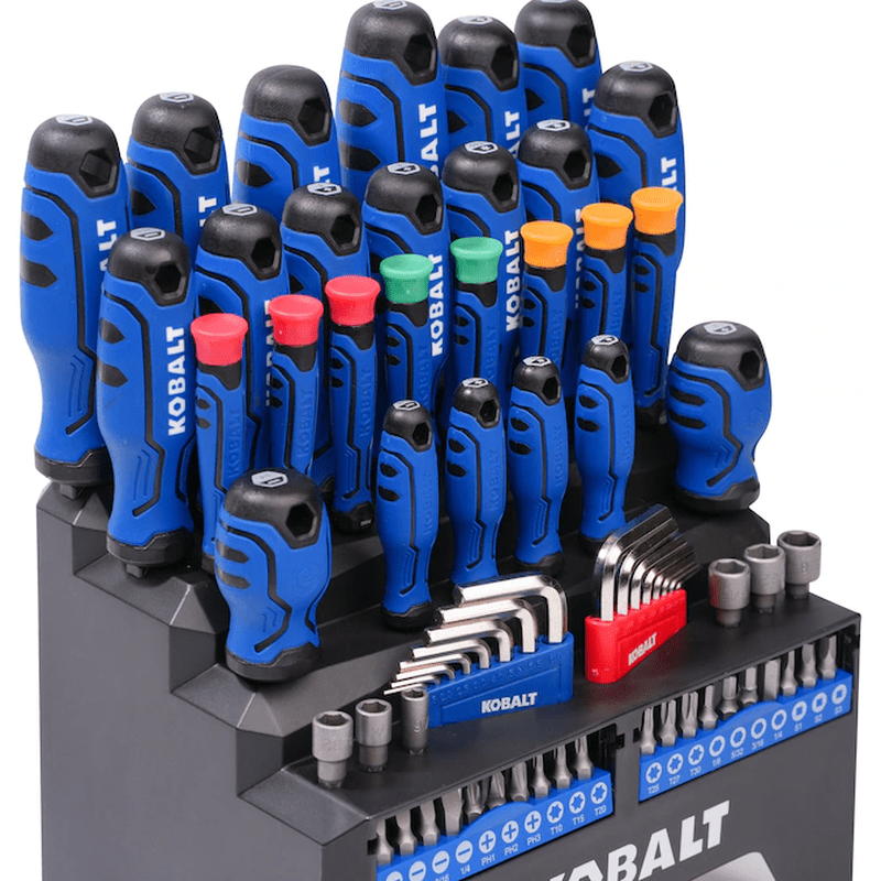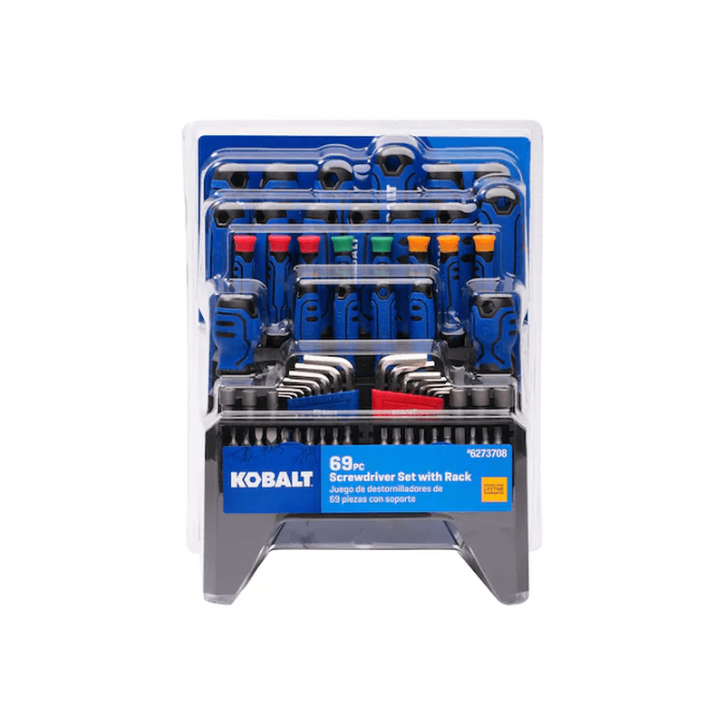 This Kobalt 69pc Screwdriver Set with Rack is your ultimate solution for precision and organization. This comprehensive set features a wide variety of screwdrivers, all crafted with durable materials for long-lasting performance. The included rack keeps everything neatly organized and easily accessible, making it simple to find the right tool when you need it.