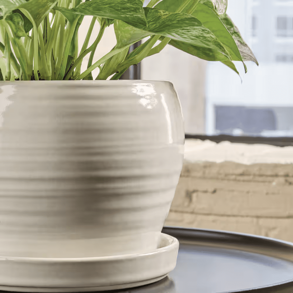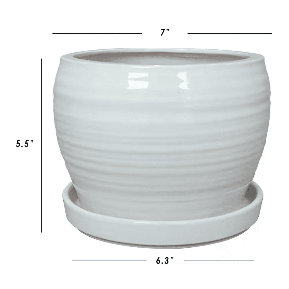 the Vigoro 7 in. Rosalie Ceramic Planter in White is a stunning addition to any indoor setting. The transitional design works well with a variety of home decor styles. The hand-applied glaze in a beautiful white adds a lovely touch to any room in your home. We’ve attached a saucer to help catch excess water. If placing on a delicate surface, including wood, be sure to add protection underneath to prevent moisture damage. For easy planting with out getting hands dirty, drop in a new houseplant. Recommended for indoor use.