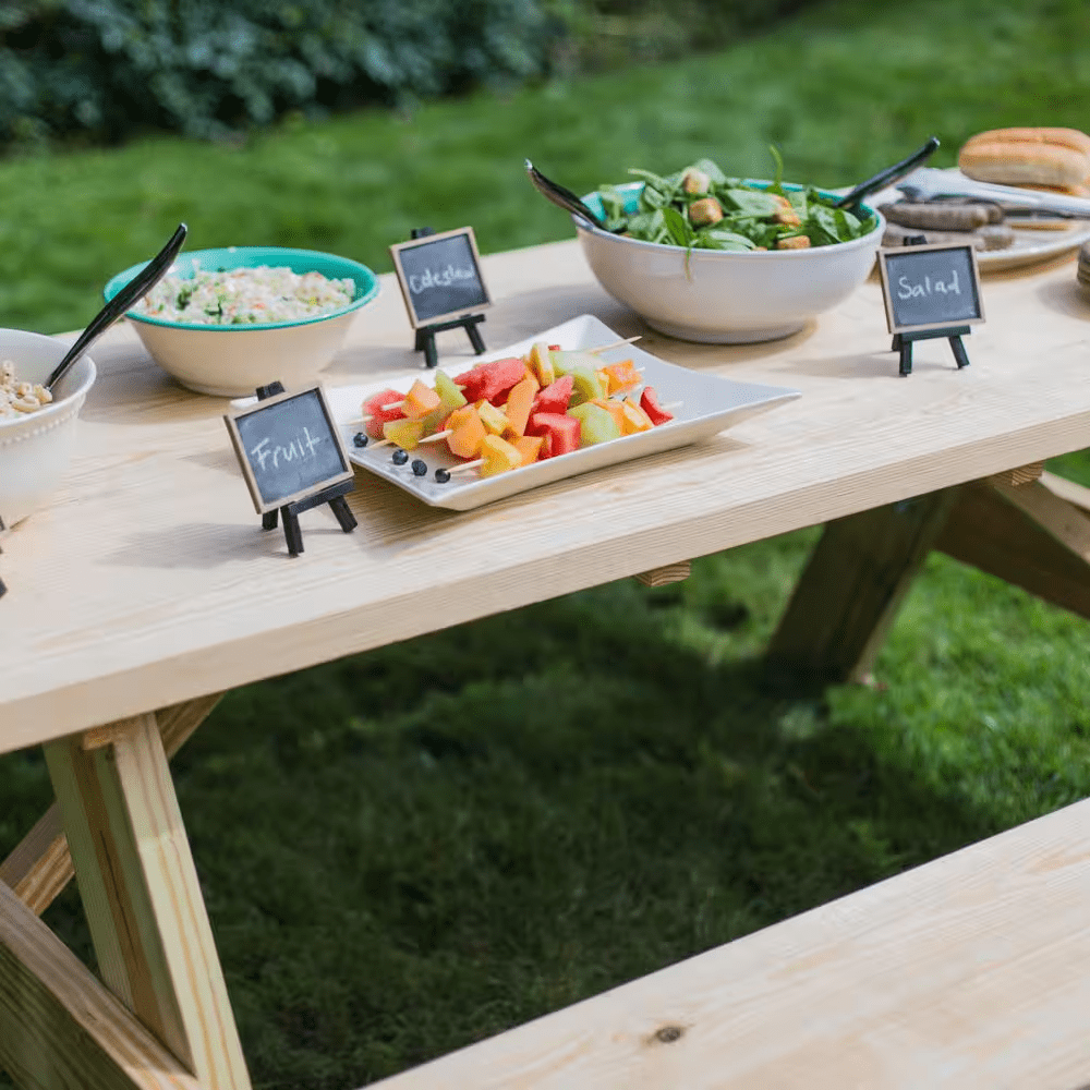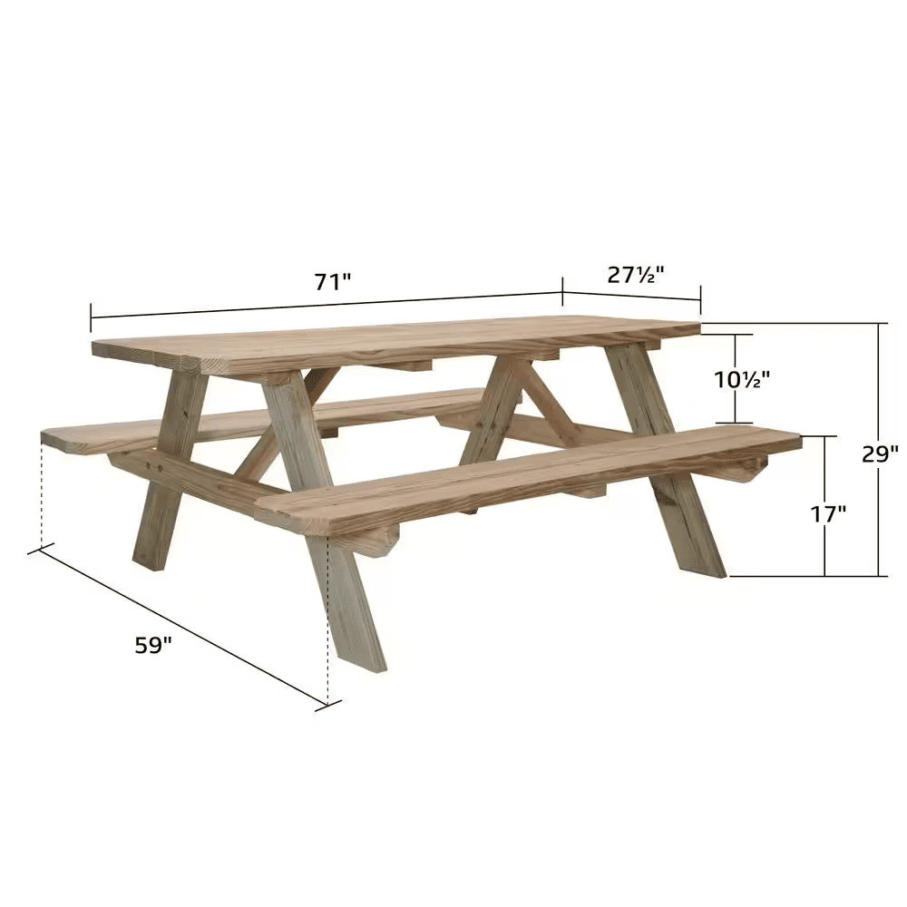 Refresh your outdoor living space with our 6 ft. Pine Picnic Table Kit with Treated Legs. Designed with treated legs to keep the tabletop safe for food preparation and entertaining, this kit features a preassembled top and precut, predrilled components with rust-proof hardware for hassle-free assembly and lasting durability. Perfect for backyards, decks, patios, and other outdoor living spaces, it’s a practical addition to any home.