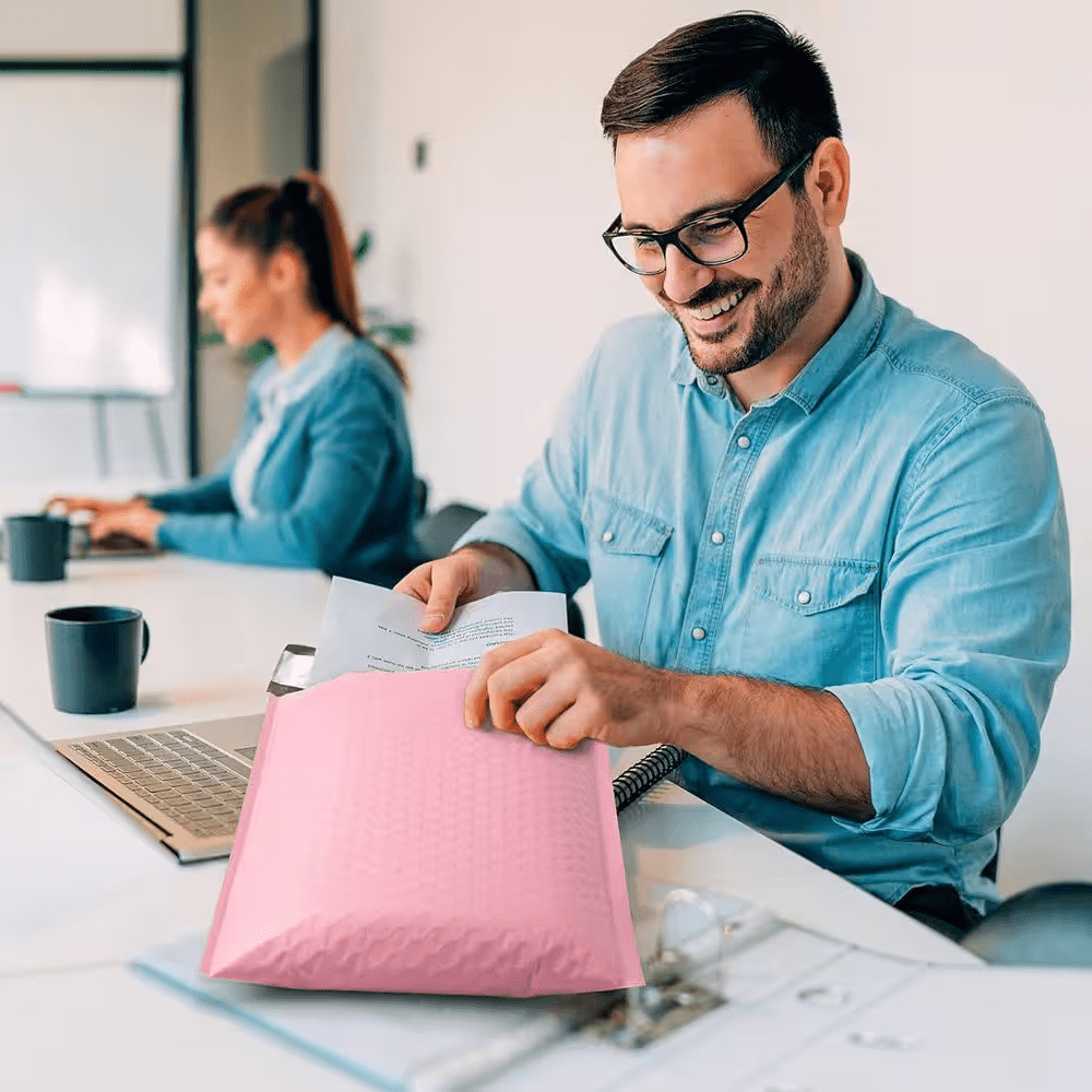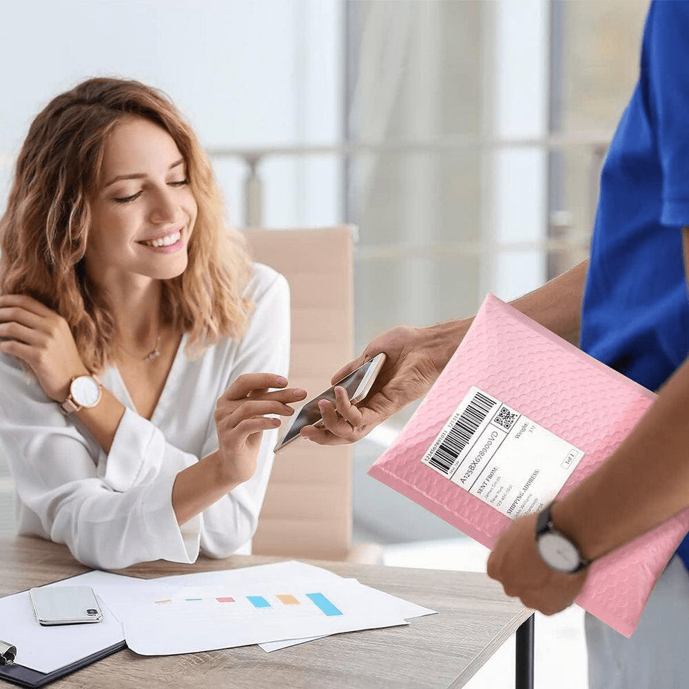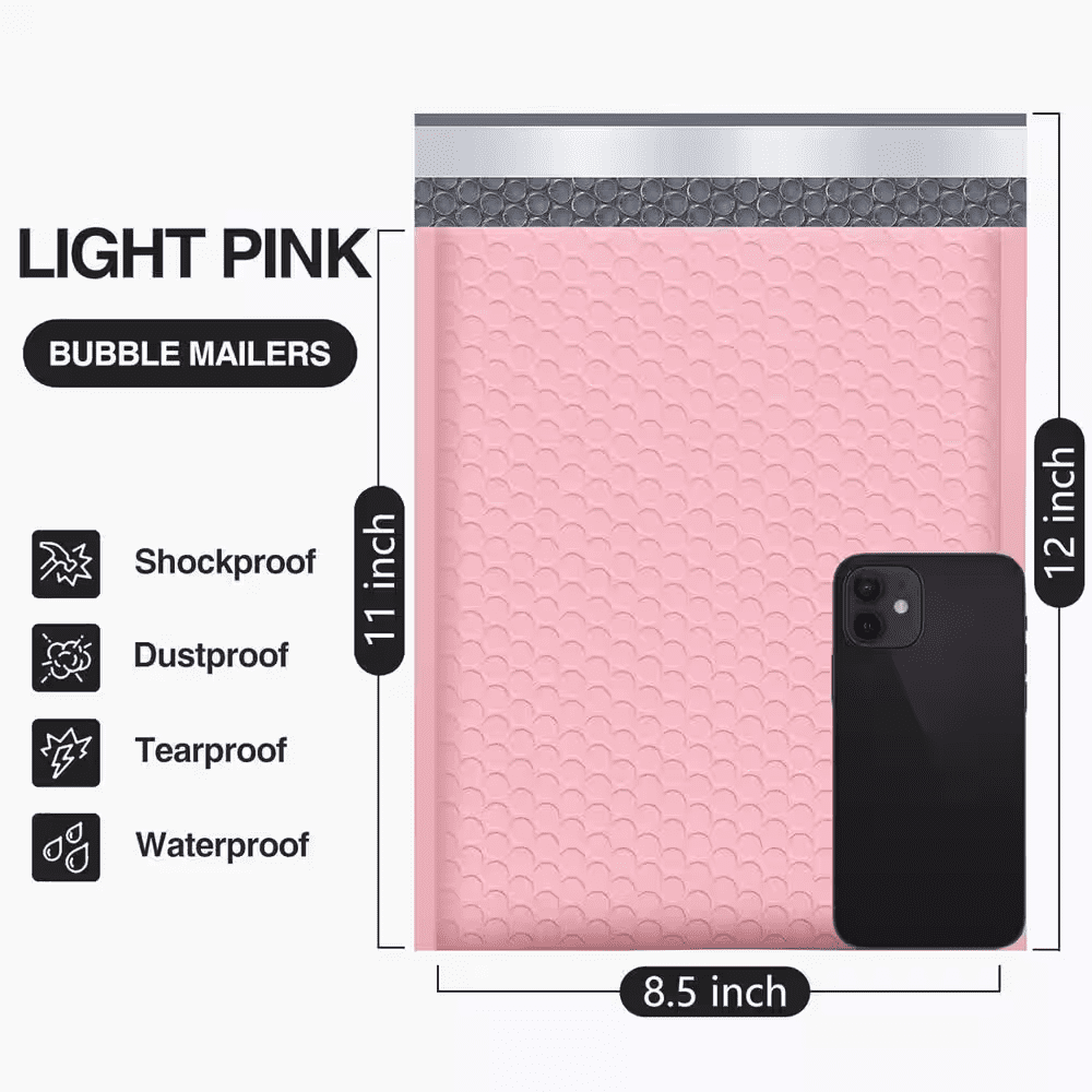 Ensure your valuable items reach their destination safely with these robust and durable bubble mailers. The polyethylene material and reinforced sealing provide superior waterproof and tear-proof protection, making them perfect for any weather conditions. Ideal for shipping clothes, makeup, or supplies, these light pink mailers add a touch of elegance to your boutique packaging needs.