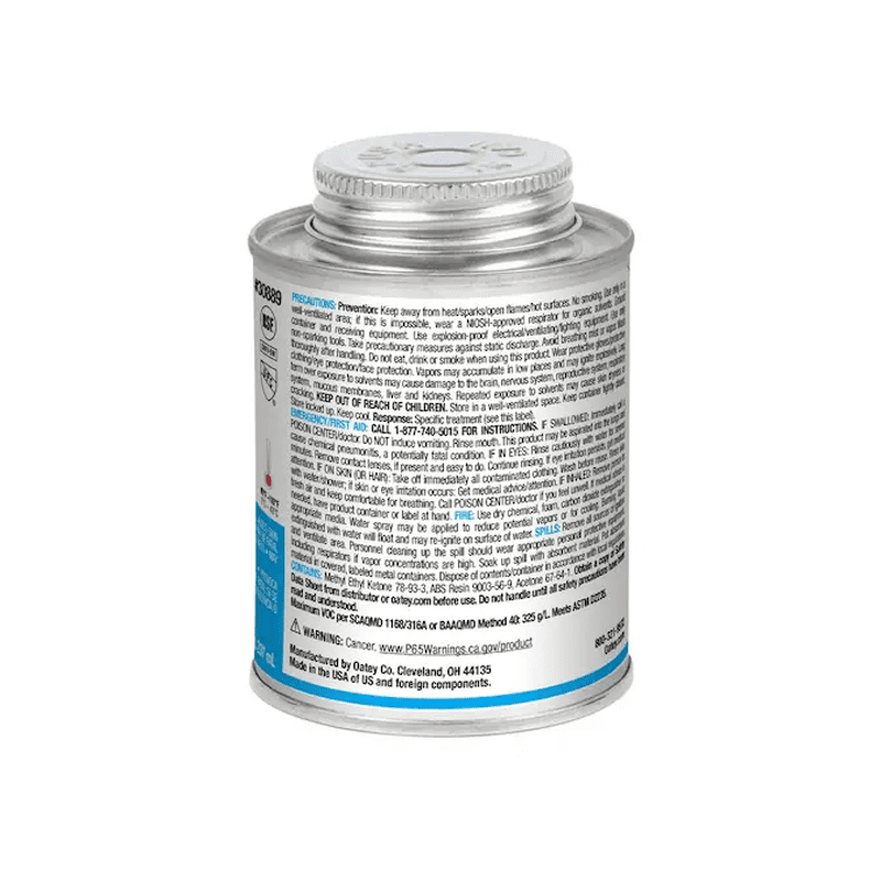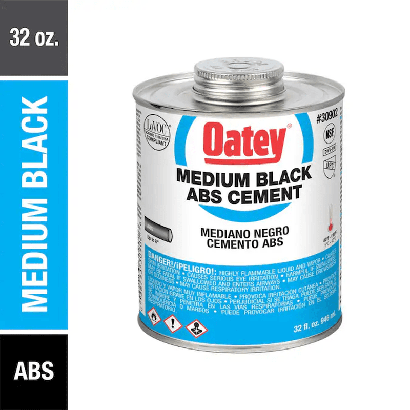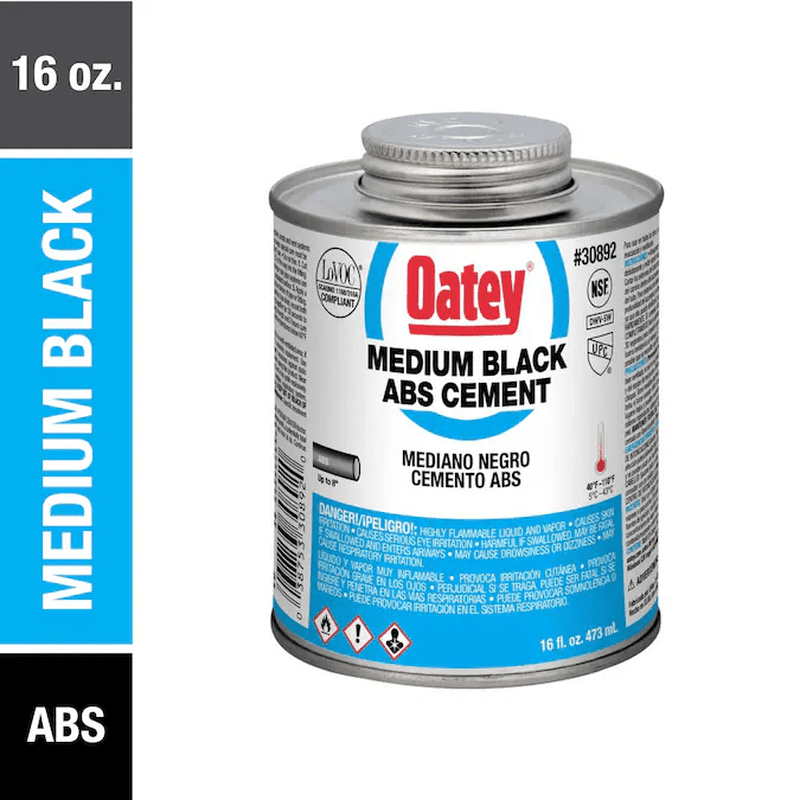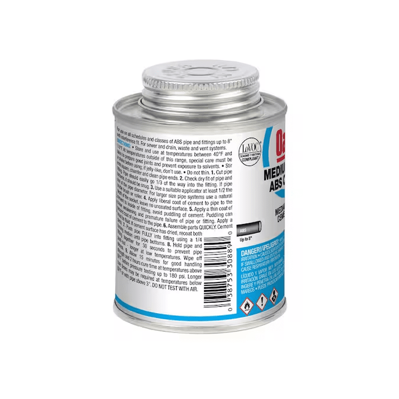 Oatey® ABS Medium Bodied Fast Set Black Cement is recommended for all non-pressure applications. The black color easily identifies application to pipe surface. Its medium body has excellent gap filling properties and is easy to apply with included in-lid dauber. This fast set cement can be used to solvent weld all schedules and classes of ABS pipe and fittings up to 6 in. diameter with interference fit. Set time is about 30 minutes. Oatey products have earned the trust of plumbing professionals for over 100 years.