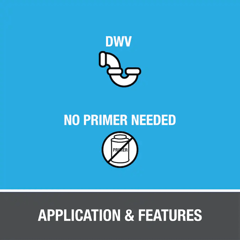 - Can be used on all schedules and classes of ABS pipe and fittings up to 6-in diameter with interference fit