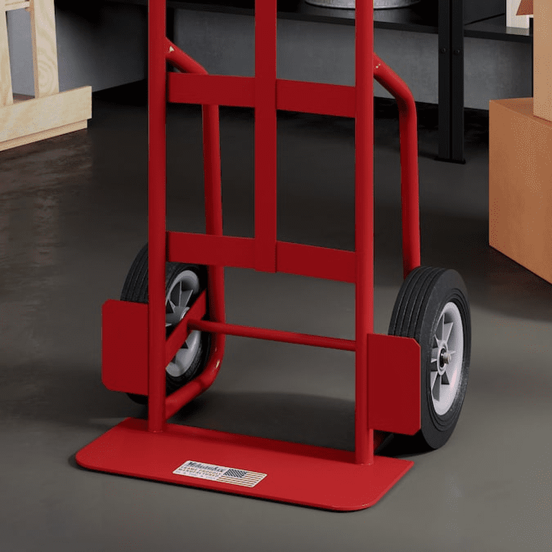 The Milwaukee 800 lbs. capacity dual handle hand truck allows you to do heavy lifting with ease. Made of heavy duty metal and equipped with solid 10 in. rubber wheels and built-in stair climbers. The hand truck lets you transport up to 800 lb. up and down stairs and steps.