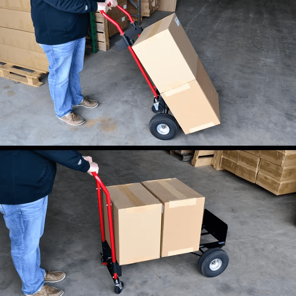 - 2-in-1 convertible hand truck supports up to 800 lbs.