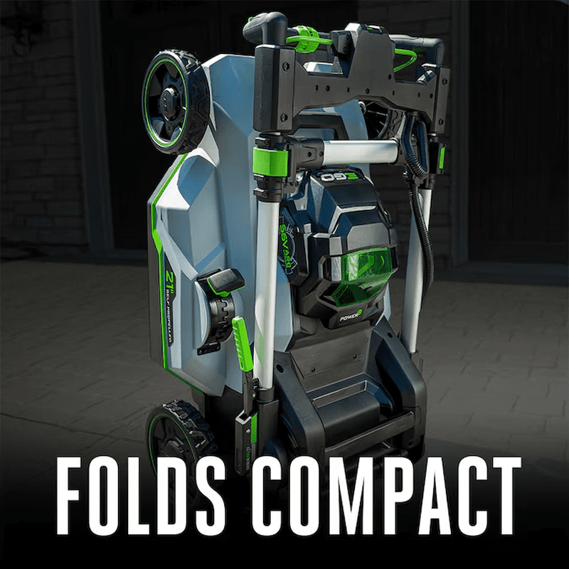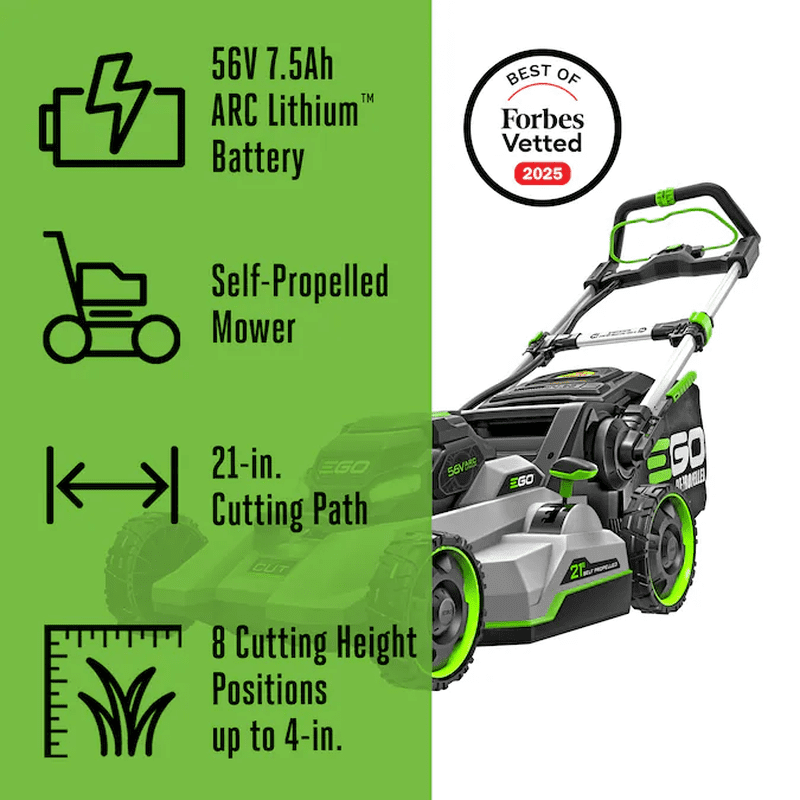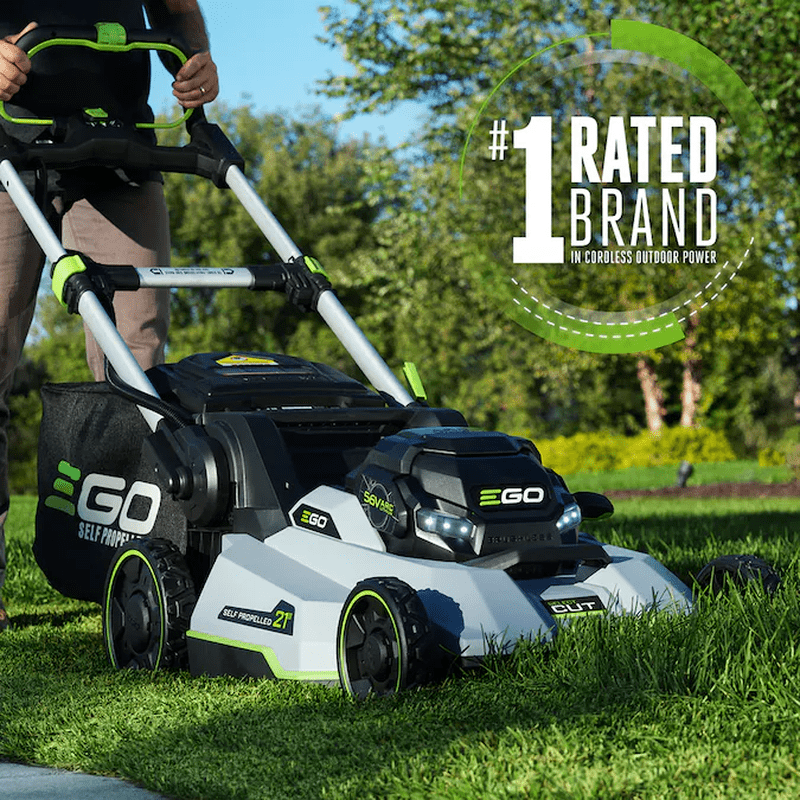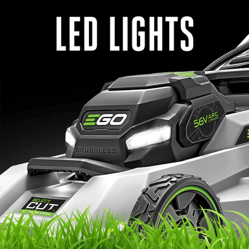 The EGO POWER+ 21″ Select Cut Self-Propelled Mower delivers up to 7.0 ft-lbs of torque for performance that exceeds the power of gas. Its Select Cutâ„¢ Multi-Blade Cutting System is equipped with three interchangeable lower blades: the Mulching Blade, High Lift Bagging Blade, and Extended Runtime Blade. The Mulching Blade comes installed on the lawn mower and is ideal for weekly mulching, giving you the mulching quality expected from a high-end gas lawn mower. The High Lift Bagging Blade provides extra suction ideal for bagging, leaving your yard free of clippings. The Extended Runtime Blade provides an optimal balance of cut quality and runtime for all around performance. All three blades can be used interchangeably based on your desired cut. The Upper Blade is used in combination with the lower blade chosen to slice the grass into fine fragments, greatly enhancing cutting performance with all grass types. EGO Touch Driveâ„¢ self-propelled technology puts complete control of the self-propel system in the palm of your hands by using pressure to engage the system. Easily control the variable speed with a dial positioned at your fingertips for safe and convenient operation. The Select Cutâ„¢ cordless lawn mower harnesses the power of the industry’s most advanced 56V ARC Lithiumâ„¢ batteries to deliver up to 60 minutes of runtime on a single charge with the included 7.5Ah battery. Three-in-one functionality delivers your choice of mulching, side discharge, or bagging your grass clippings; an easy-access two-bushel grass collection bag is included. This electric lawn mower includes bright LED lights for added visibility when mowing at dawn or dusk, and it folds for compact storage between cuts. Experience Power Beyond Beliefâ„¢ with the EGO POWER+ 21″ Select Cutâ„¢ Self-Propelled Lawn Mower.