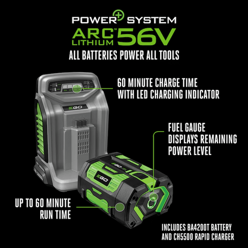 - Up to 60 minutes of runtime on a single charge with the included 56V 7.5Ah ARC Lithiumâ„¢ battery