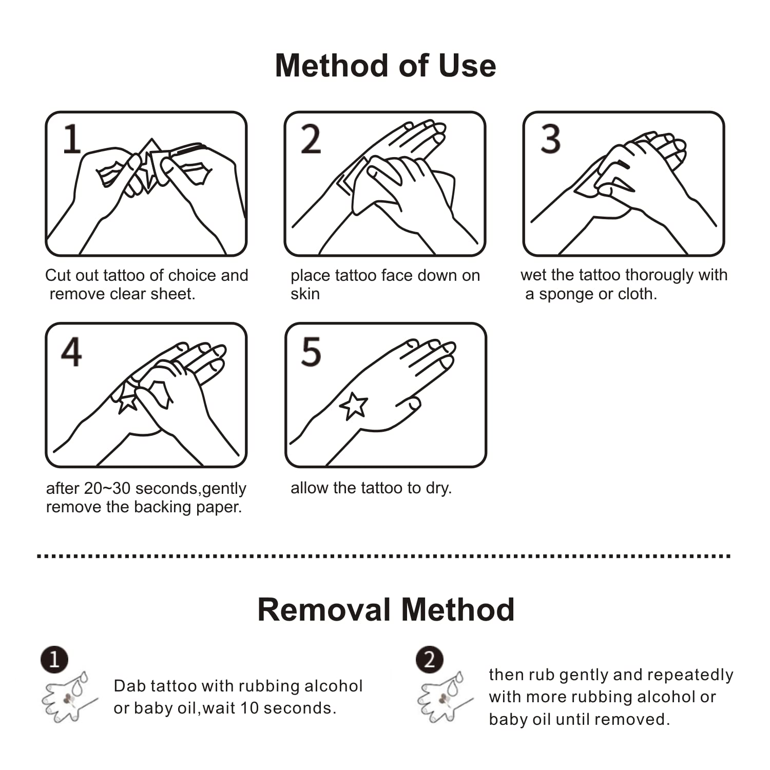 • Waterproof and long-lasting – These fake tattoos can last for 3-5 days, waterproof and sweaty, so you can swim, bathe or sweat without worry.