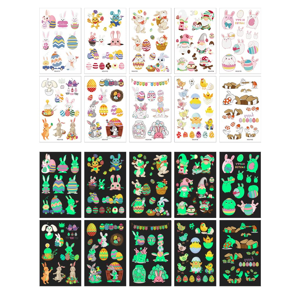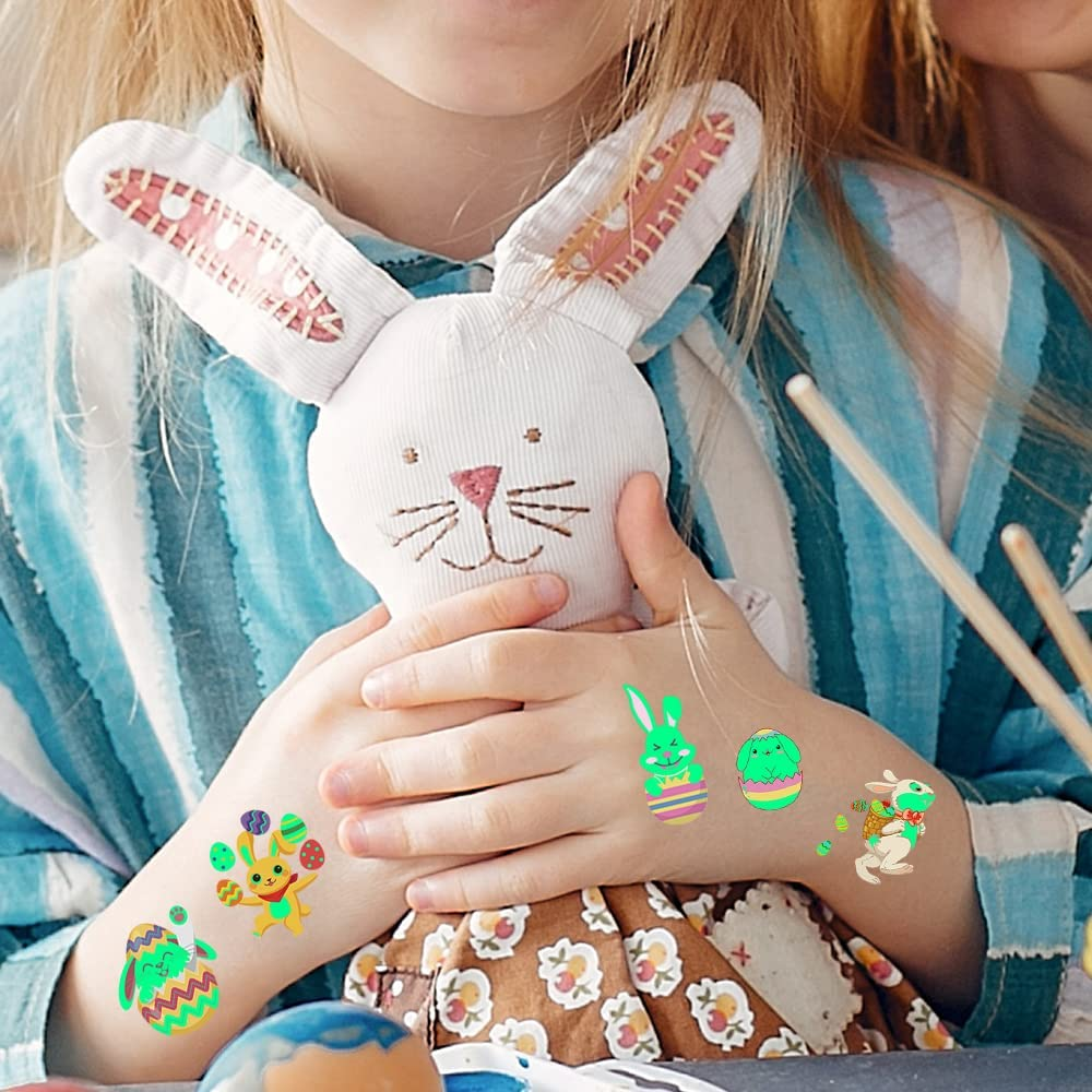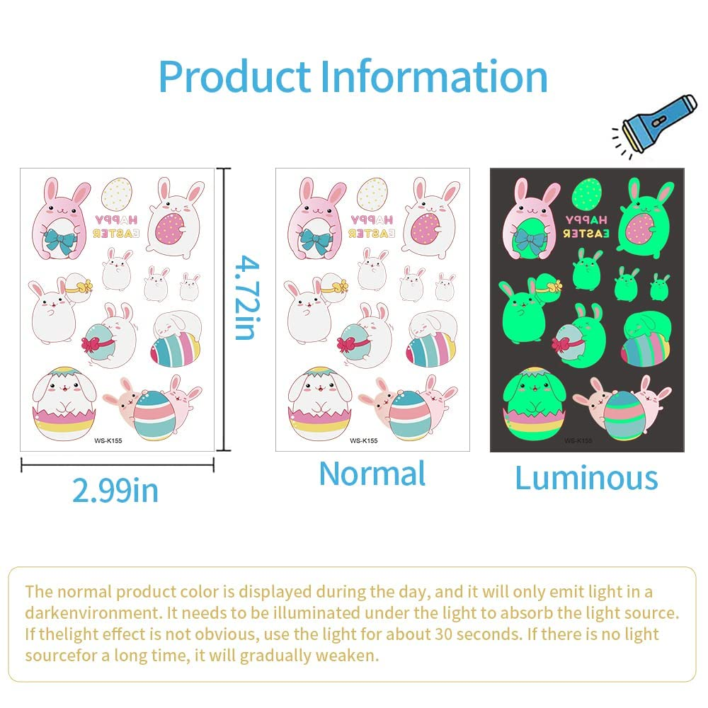 • Lovely gifts for kids - 10 sheets 4.72 * 2.99 inch Children’s Easter luminous Temporary Tattoo