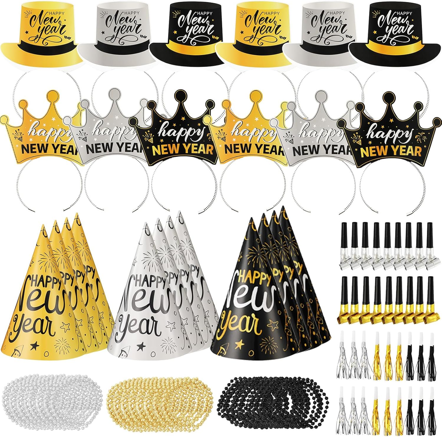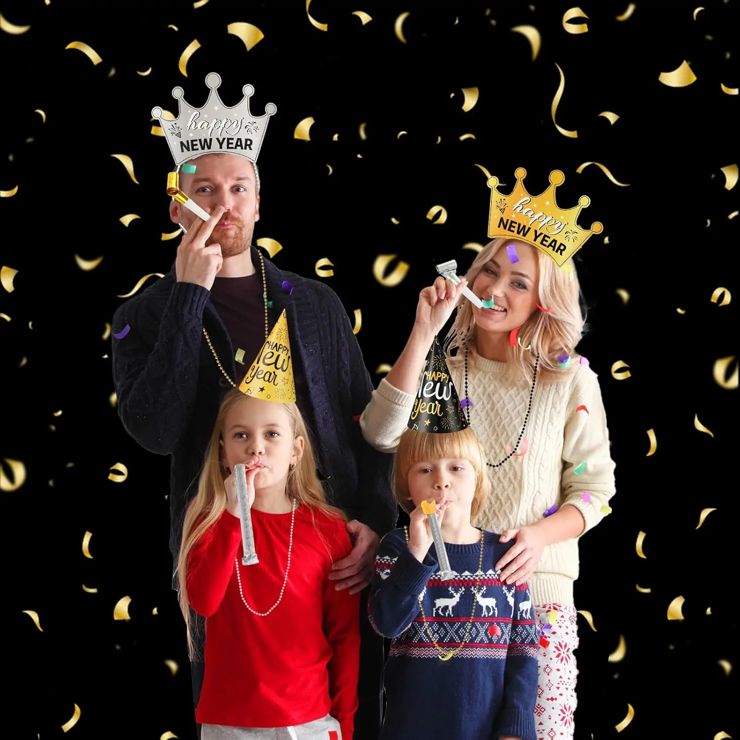 - Reliable Material: These new year cone hats, tiaras, noisemakers, beaded necklaces are made of premium paper and plastic material, delicately printed and not easy to fade, not easy to break or tear, perfect for the coming of the 2026 New Year’s Eve, making your party full of fun and joy.