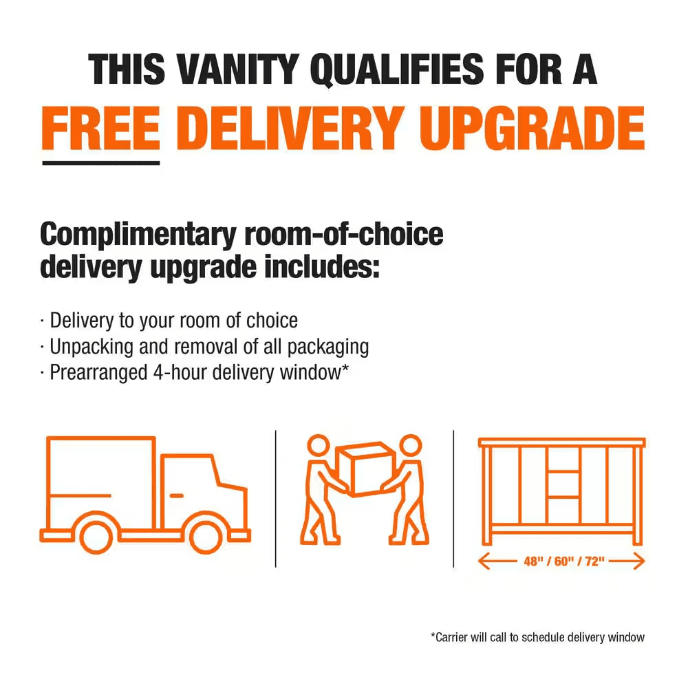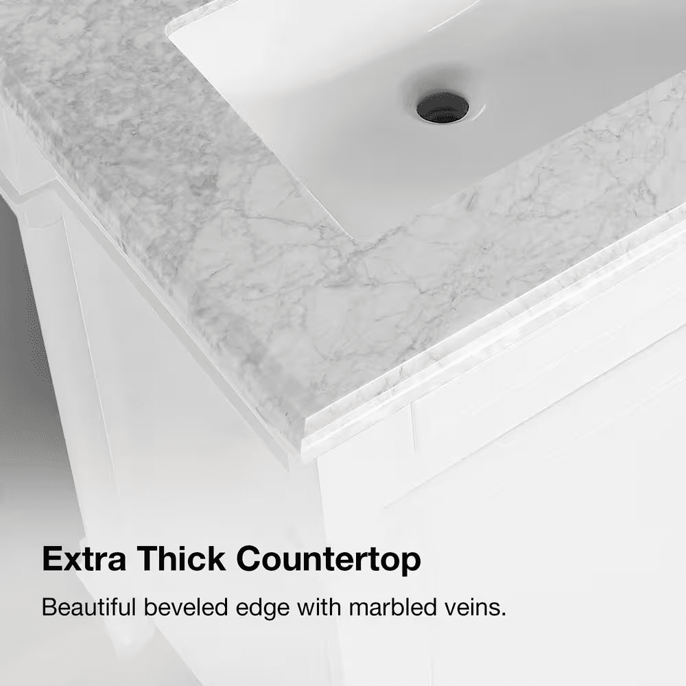 - 60 in W x 22 in D x 34 in H wood vanity with Carrara Marble top