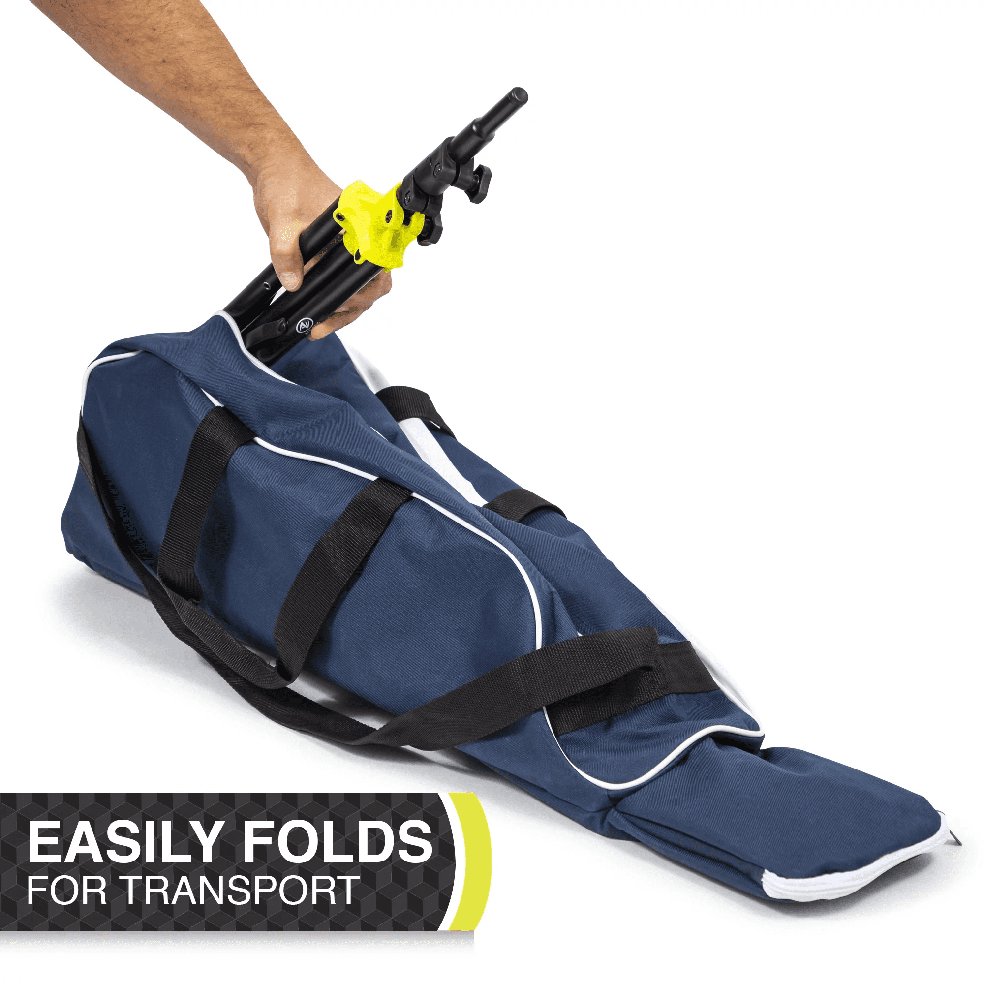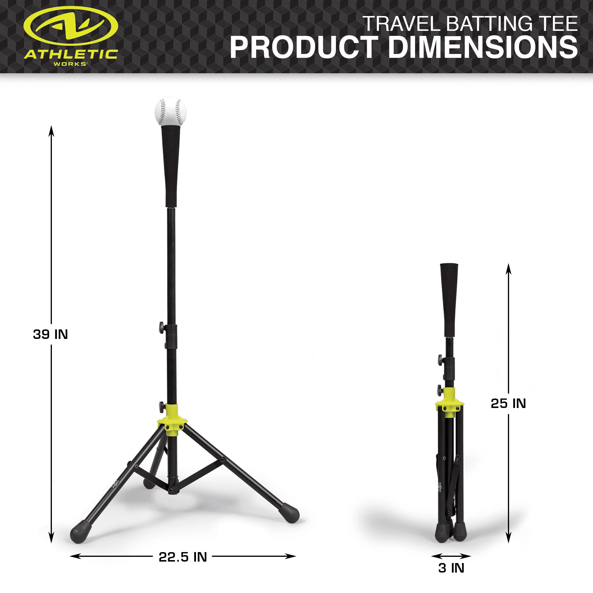 Practice like a pro with the Athletic Works Adjustable Travel Batting Tee! These The Athletic Works Adjustable Batting Tee is a versatile training aid designed for baseball, softball, and t-ball players of all ages and skill levels. It’s ideal for use in backyard practice or organized leagues to improve batting skills and consistency. The tee features a durable, flexible rubber neck and a stable steel tripod base with rubber feet, ensuring it can withstand repeated hits and remain steady during practice. It’s easily adjustable from 25 to 39 inches in height, making it suitable for both youth and adult batters. Its compact, foldable design allows for convenient storage and transport, fitting neatly into most standard bat bags.