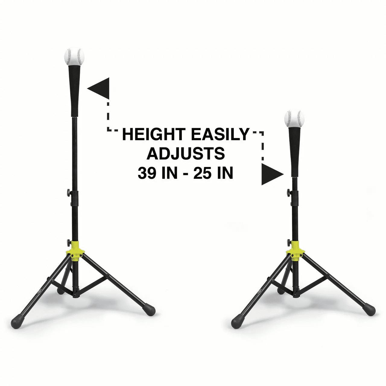 - This premium tripod batting tee is height adjustable from 25 in. to 39 in. (63.5 cm to 99 cm). Great for toddlers, kids and adults.