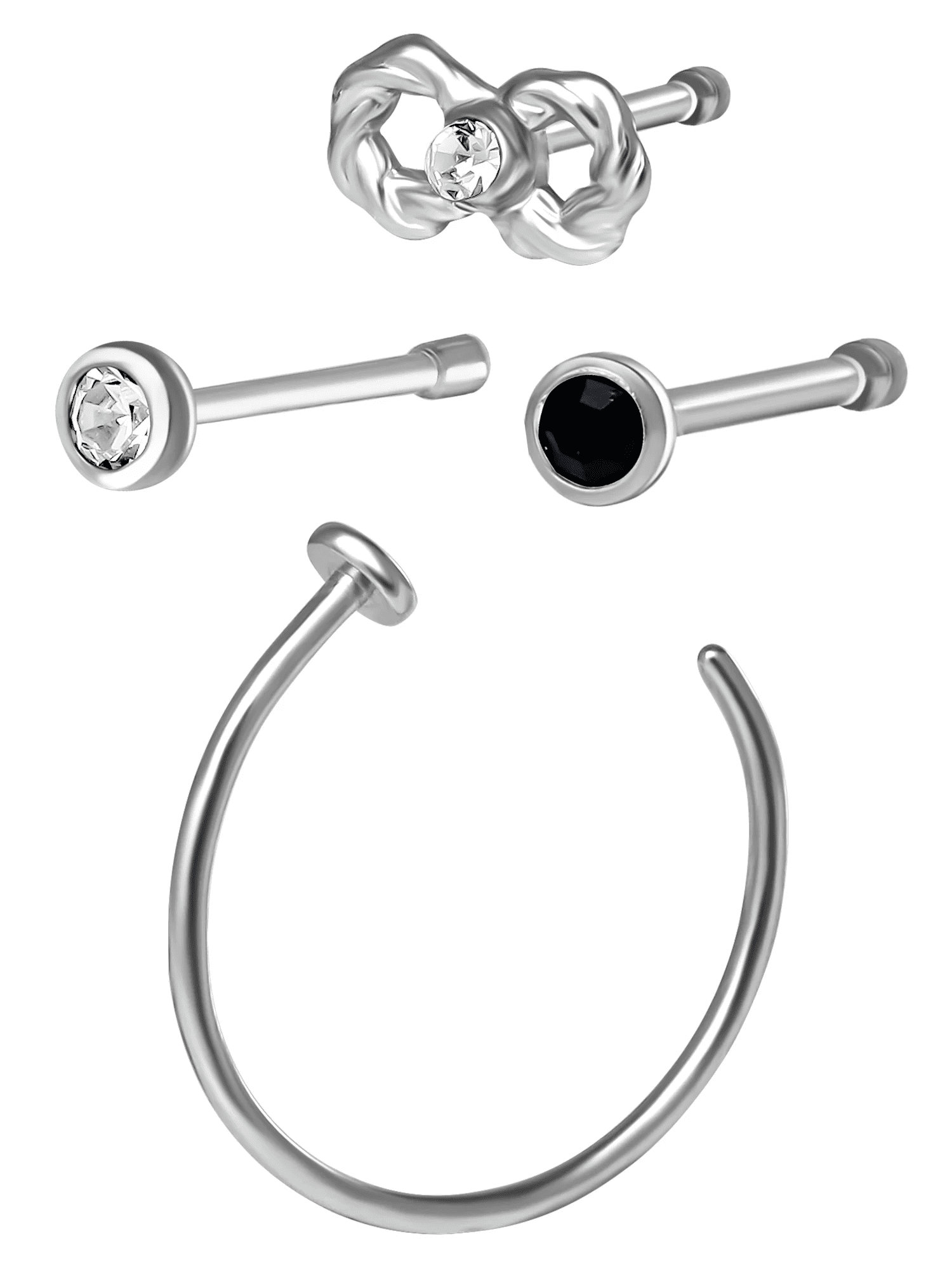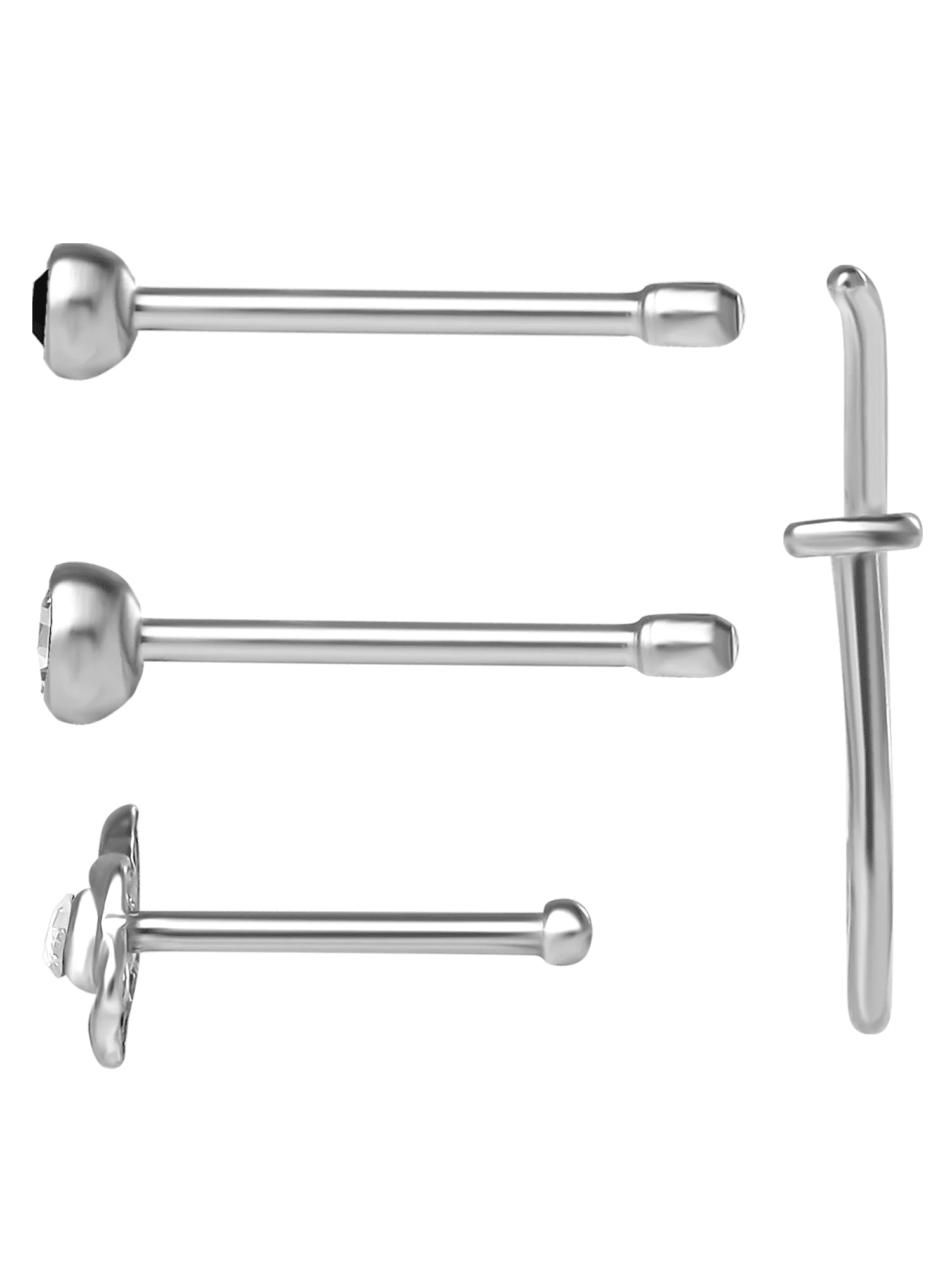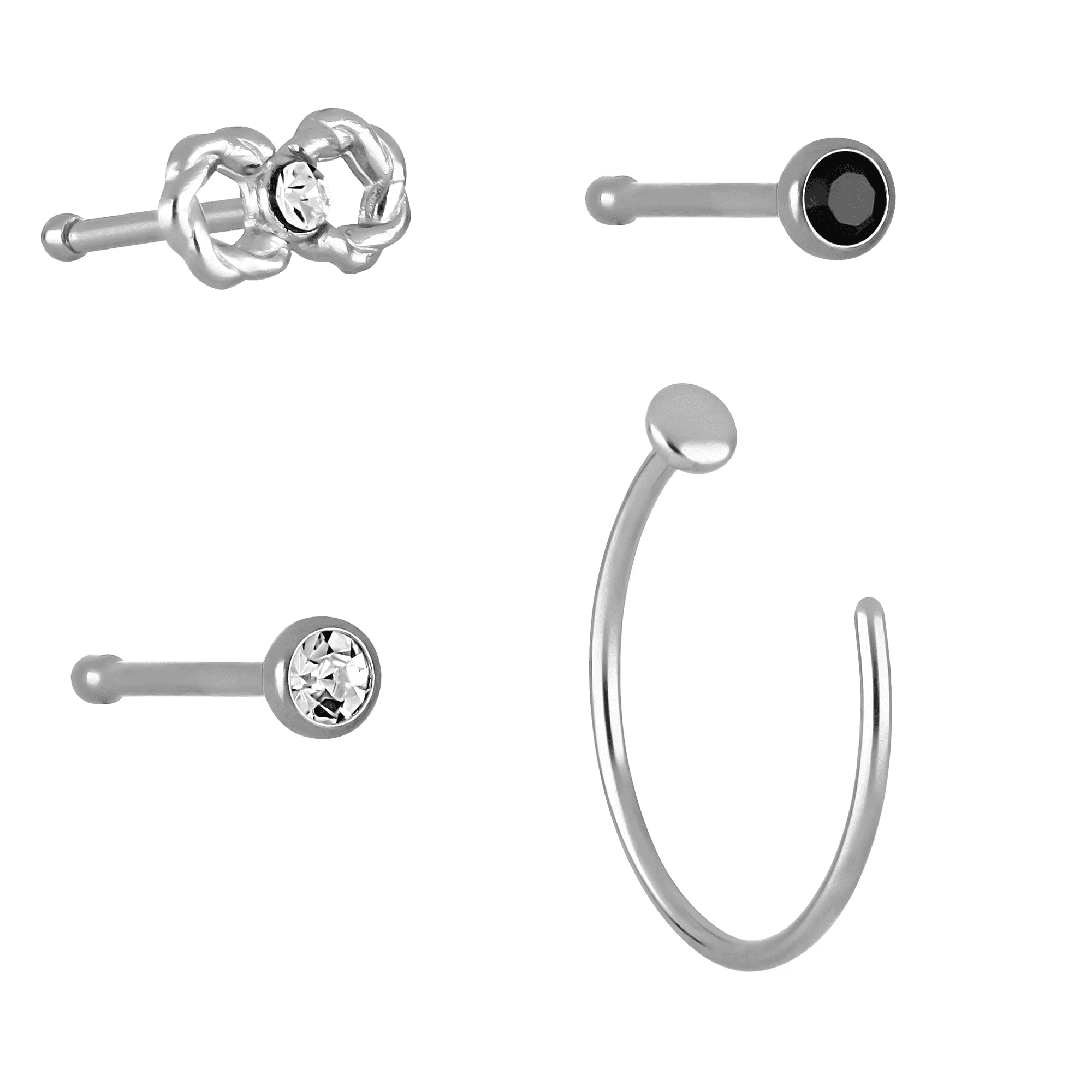 Adult Women’S 22 Gauge Multi Shape Stainless Steel & Crystal Nose Ring, 4 Pack