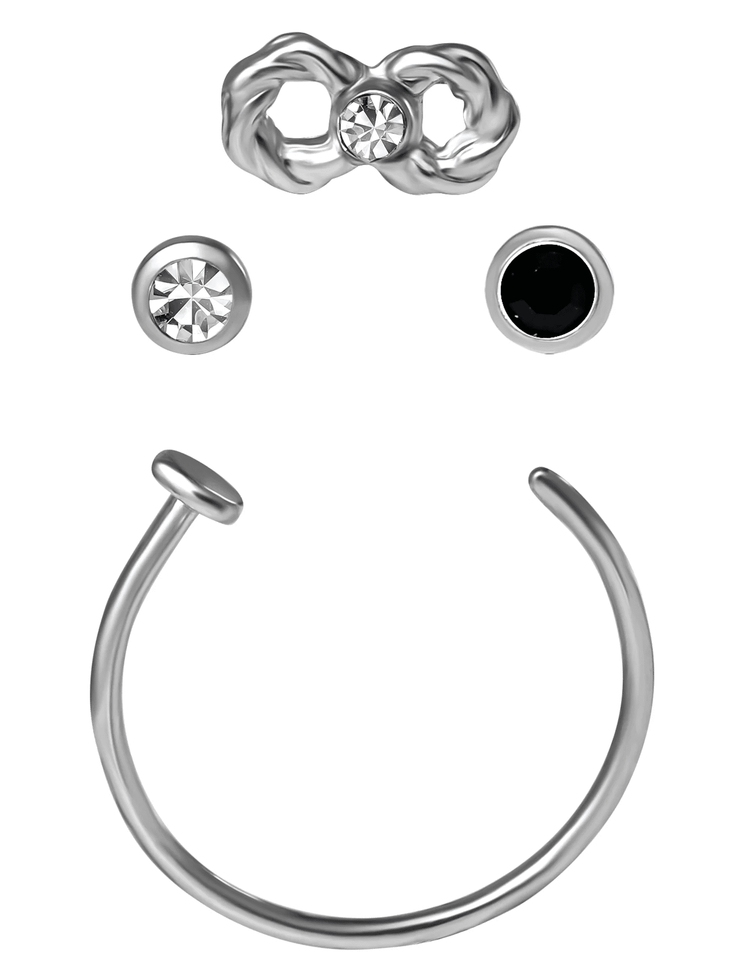 Enhance your nose piercing collection with the Adult Women’s Body Jewelry 22 Gauge Multi-Shape Stainless Steel & Crystal Nose Ring Set. This 4-pack set features a variety of nose rings, each crafted from durable stainless steel and adorned with sparkling crystals in different shapes. The 22-gauge size ensures a comfortable fit, making these rings perfect for adding a touch of elegance and versatility to your style. Ideal for daily wear or special occasions, these nose rings offer both sophistication and durability.